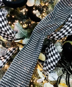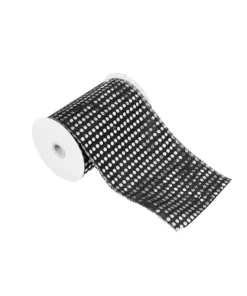 CR0434R Listón Rombos Tambor Negro Blanco y Rojo 15 cm. x 4.57 mts