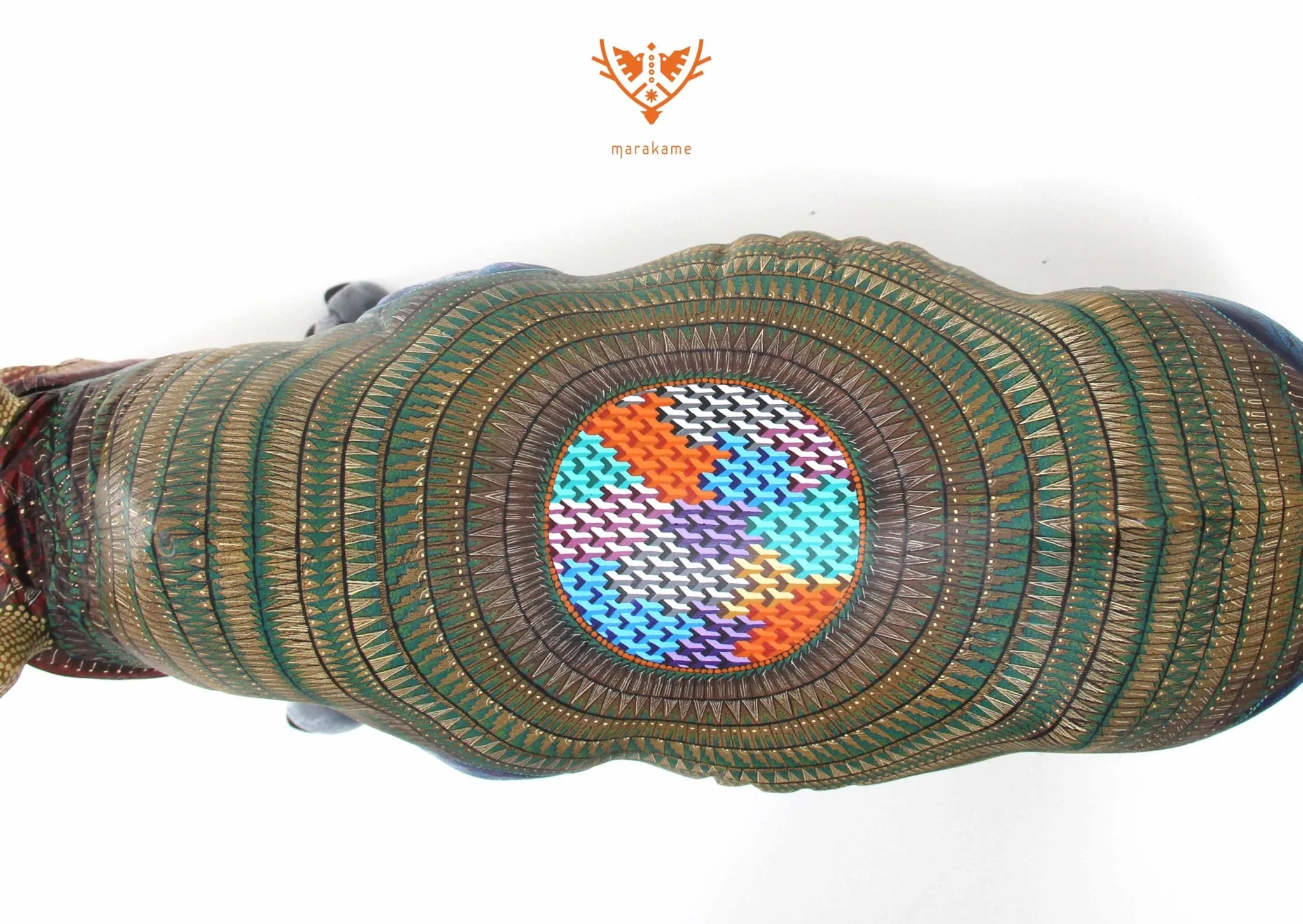 ◇ Técnica: Pintado a mano sobre talla de madera de copal (Bursera spp.).