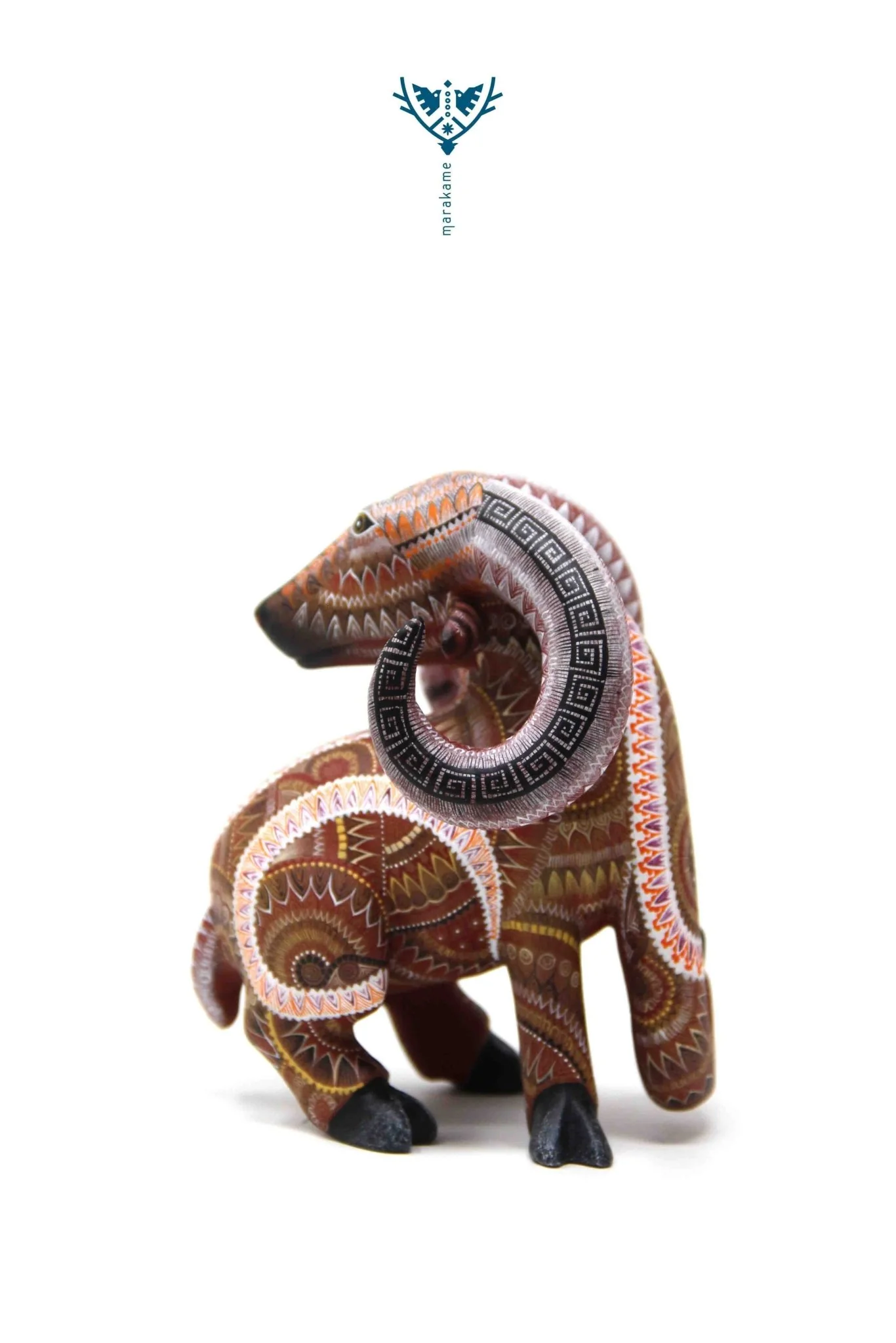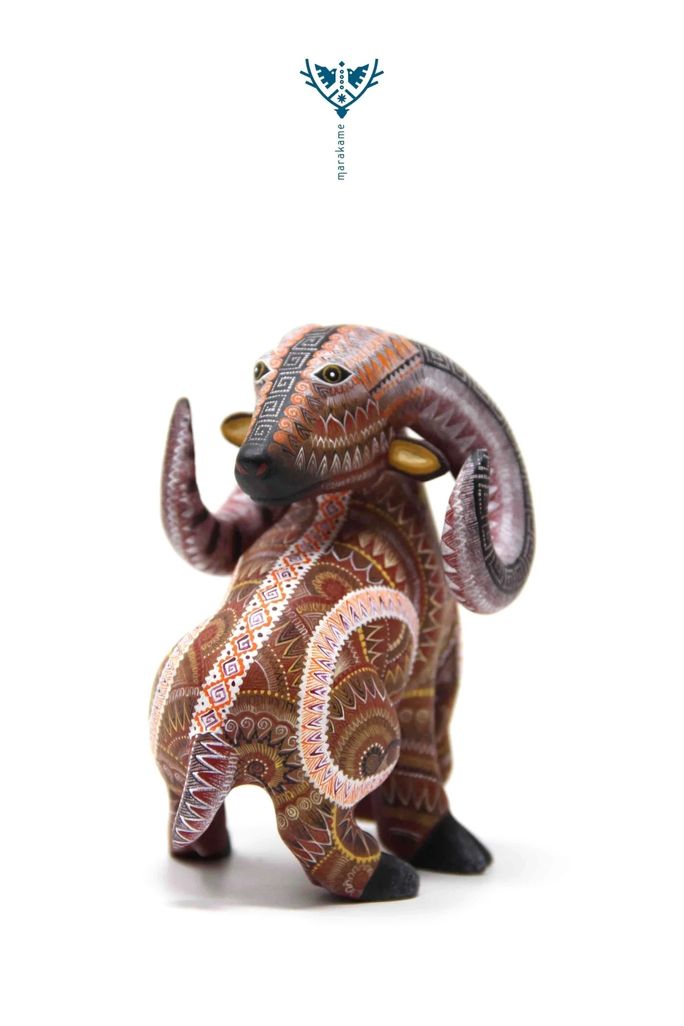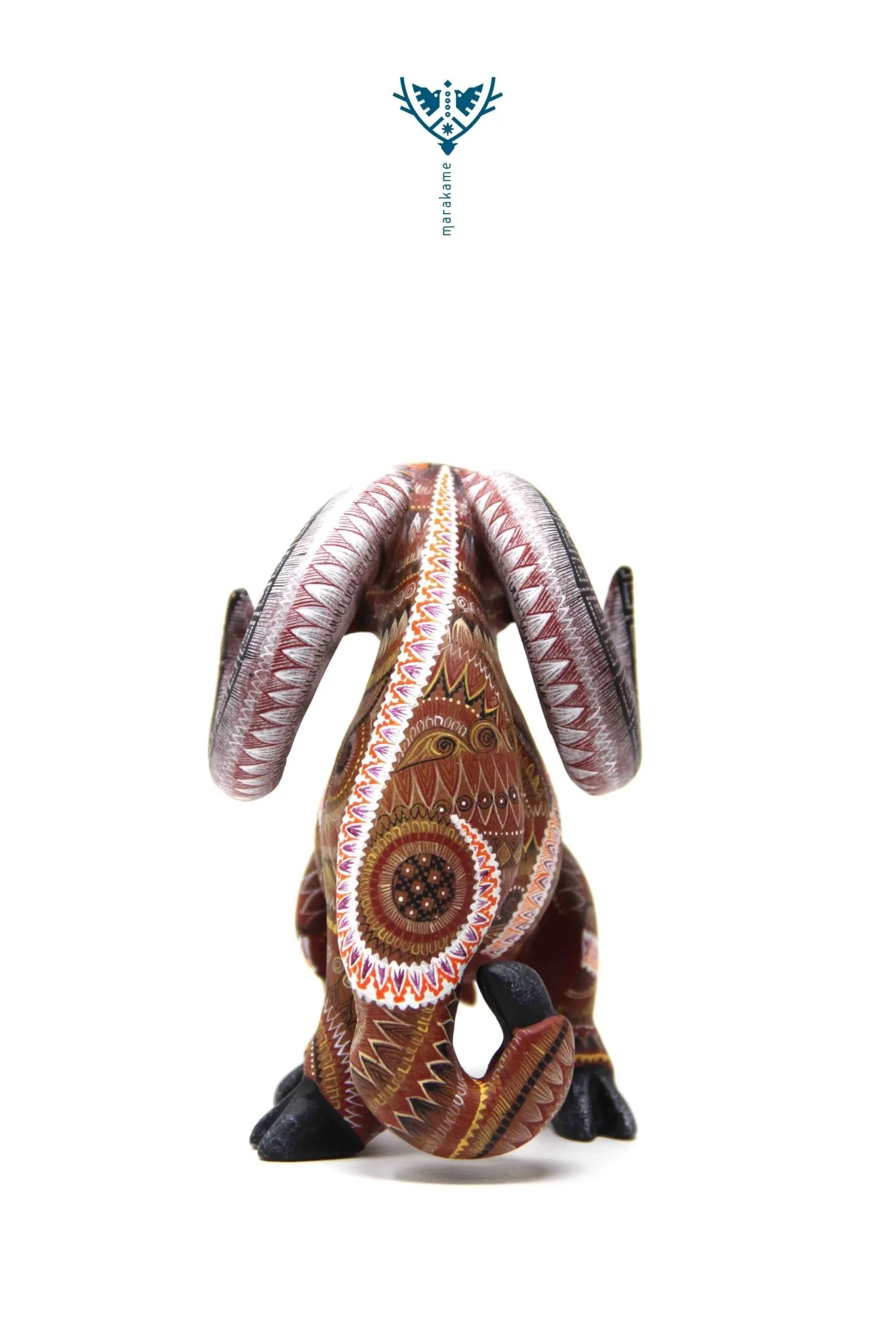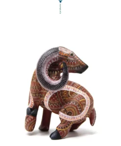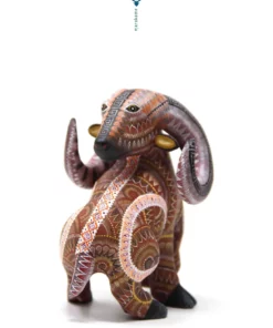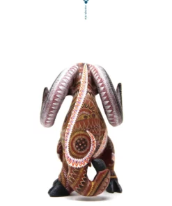 El cuerpo del Xil está decorado con detalles rojos que resaltan la textura y la forma natural de la madera. Los cuernos del alebrije están diseñados para llevar hacia abajo, lo que crea una sensación de profundidad y profundización. Los símbolos zapotecos en negro son una característica fascinante de este alebrije, ya que sugieren una conexión con la cultura y la historia de México. La presencia de estos símbolos también añade un toque de misticismo y espiritualidad a la pieza.