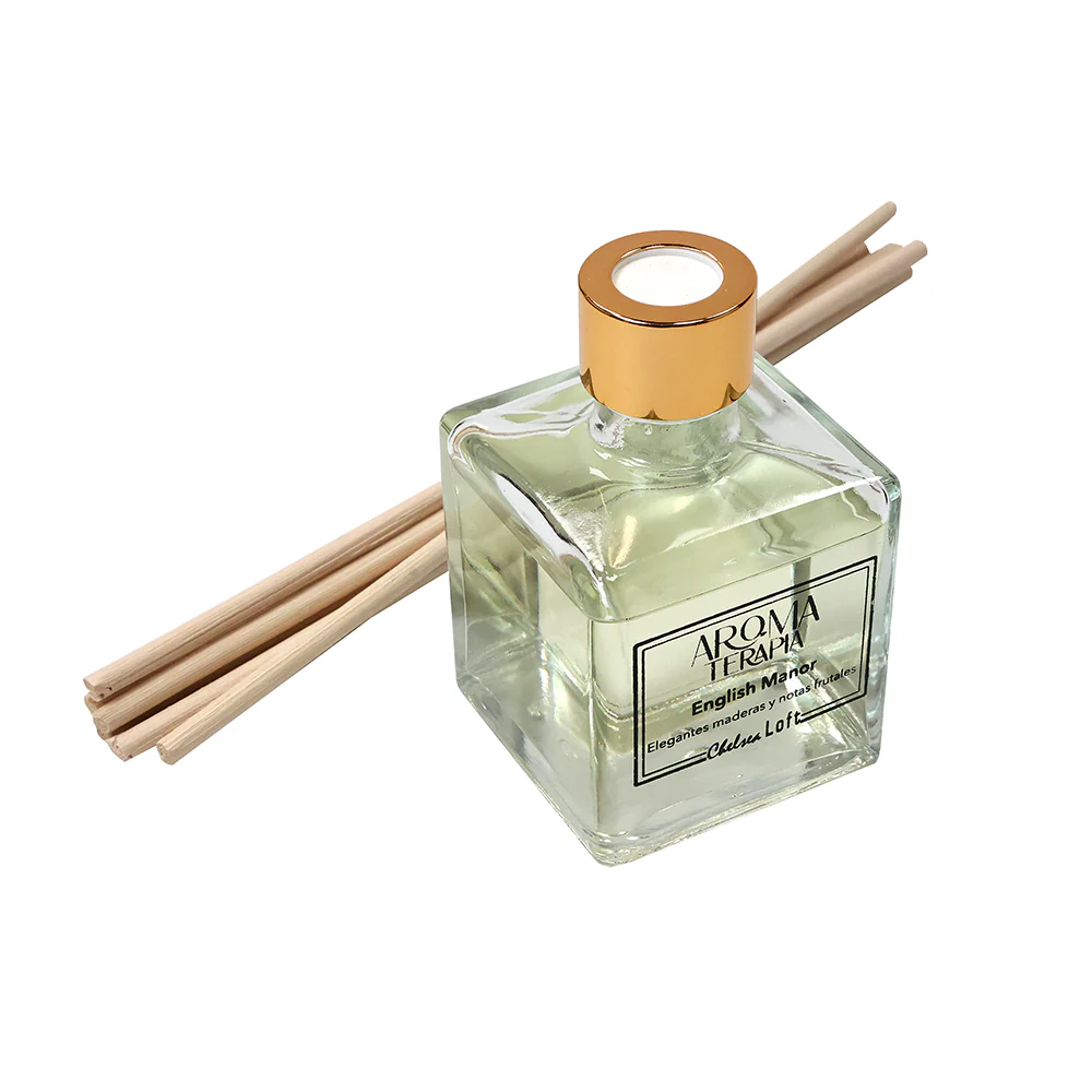 AR140EM Difusor Aroma English Manor c/140ml de Aceite Esencial y Varas de Ratán 6x26cm.