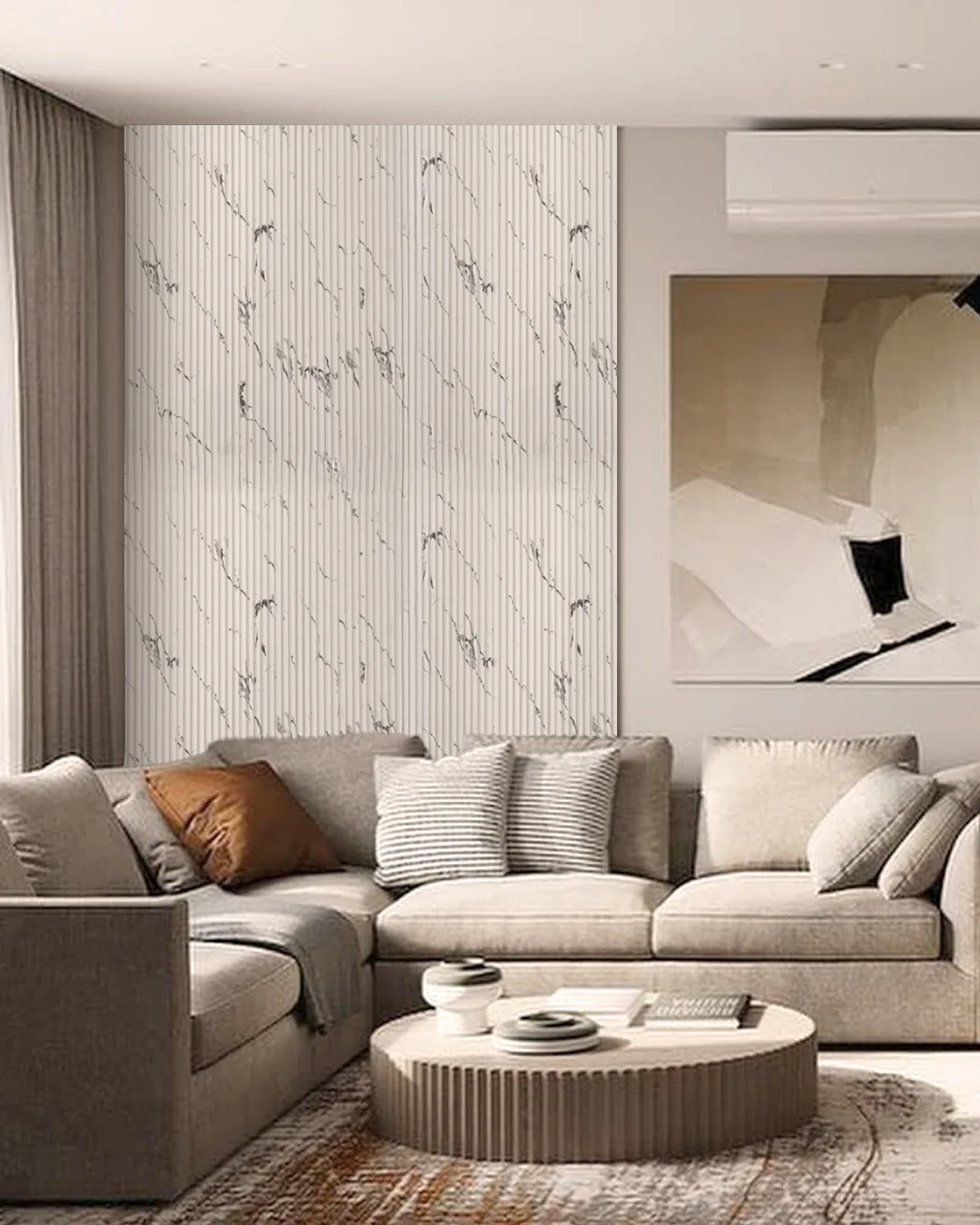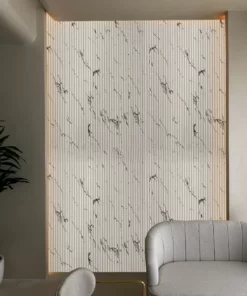 Lambrín interior zen color Deva. El panel para interiores está compuesto 100% de un polímero termoplástico, también conocido como cristal plástico. Es la solución ideal para revestir espacios interiores con estilo y durabilidad. La caja contiene 10 paneles, cubre un área de 3m x 2.90m, para un total de 8.7 m².