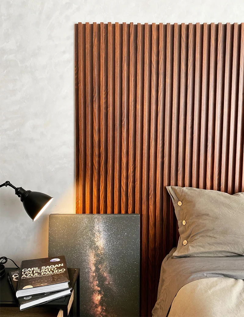 Lambrin WPC Interior Color Encino El panel WPC para interiores está compuesto por un 60% de resina de madera y un 40% de PVC, y está acabado con un revestimiento de impresión texturizado que le confiere el aspecto de la madera. La caja contiene 18 paneles, cubre un área de 2.90m x 2.90m, para un total de 8.4 m².