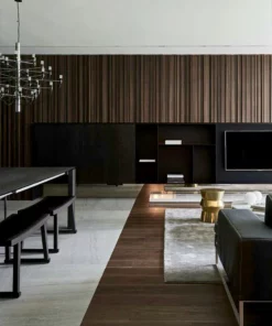 El panel WPC es de uso exclusivo para interiores. Está compuesto por un 60% de resina de madera y un 40% de PVC, y cuenta con un revestimiento de impresión texturizado que le confiere su textura. La caja contiene 20 paneles, cubre un área de 2.9m x 3.1m, para un total de 9 m2.