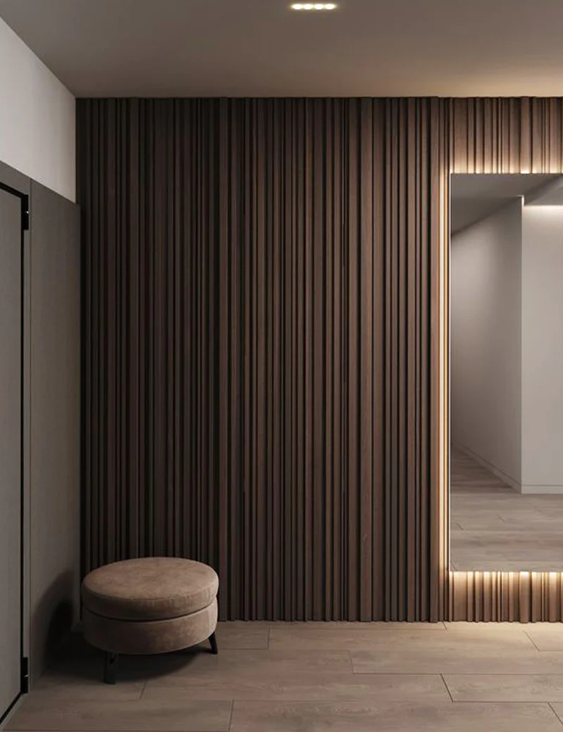 El panel WPC es de uso exclusivo para interiores. Está compuesto por un 60% de resina de madera y un 40% de PVC, y cuenta con un revestimiento de impresión texturizado que le confiere su textura. La caja contiene 20 paneles, cubre un área de 2.9m x 3.1m, para un total de 9 m2.