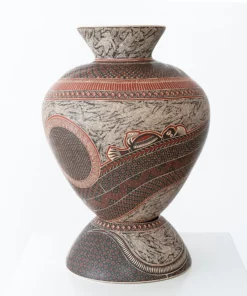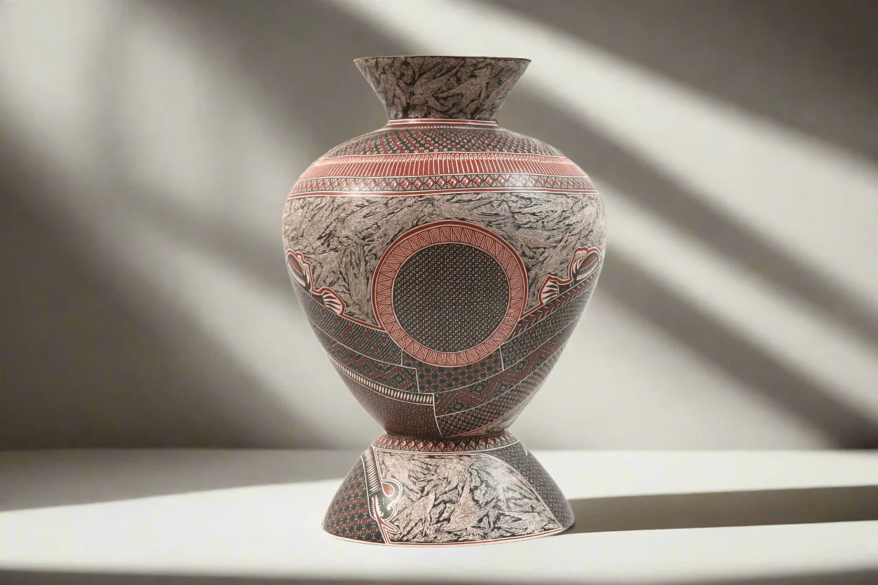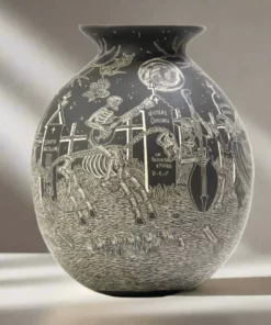 Esta obra de arte cerámica es un verdadero ejemplo de la habilidad del artista para crear un diseño complejo y atractivo. La cerámica grande presenta colores calidos y vibrantes que invitan al espectador a explorar su superficie.