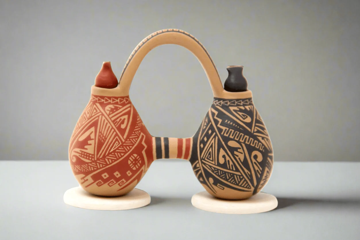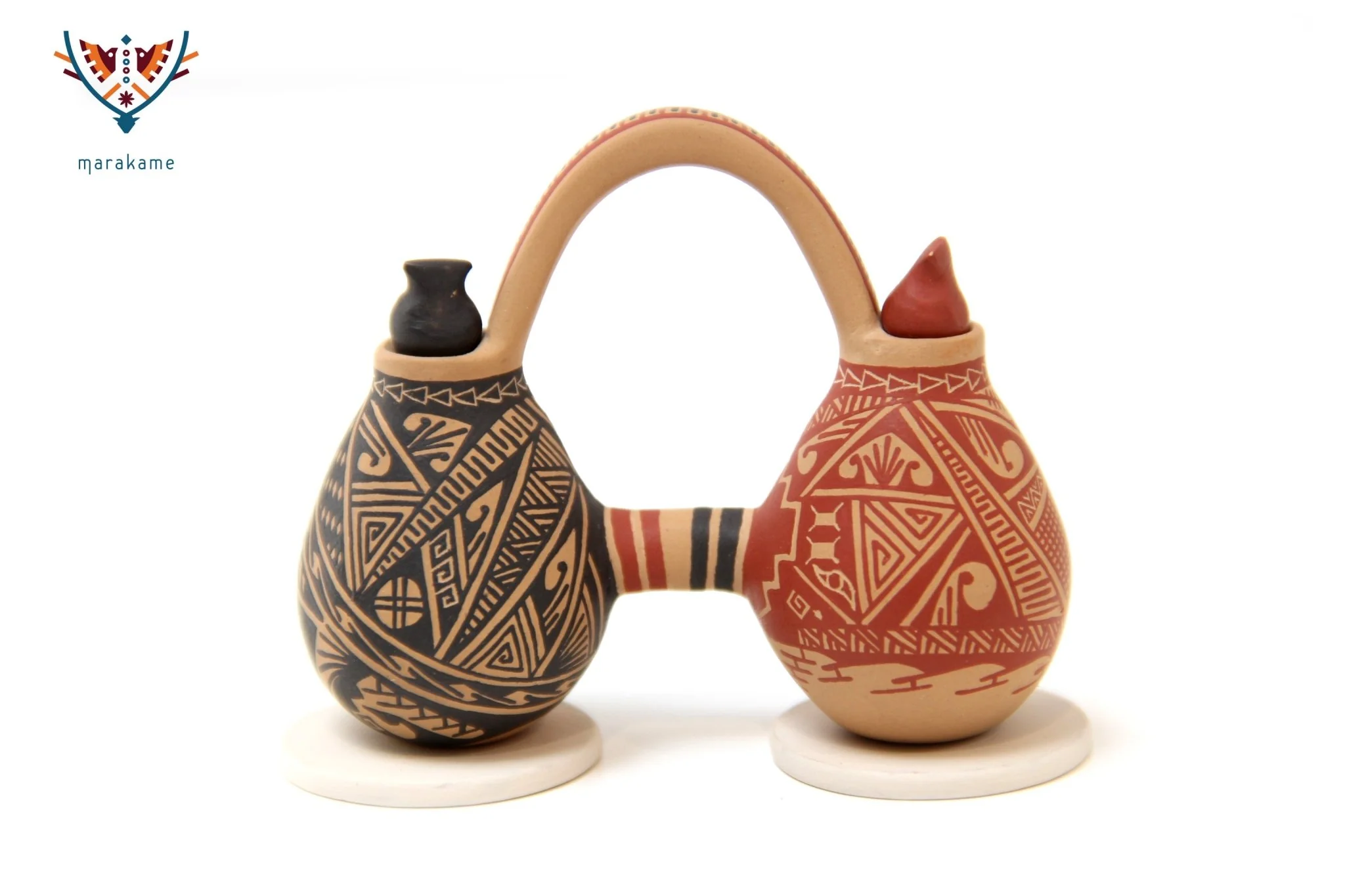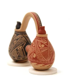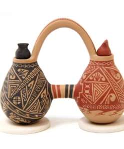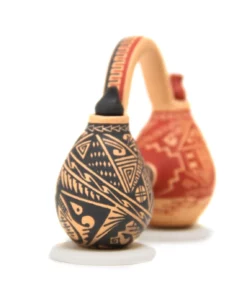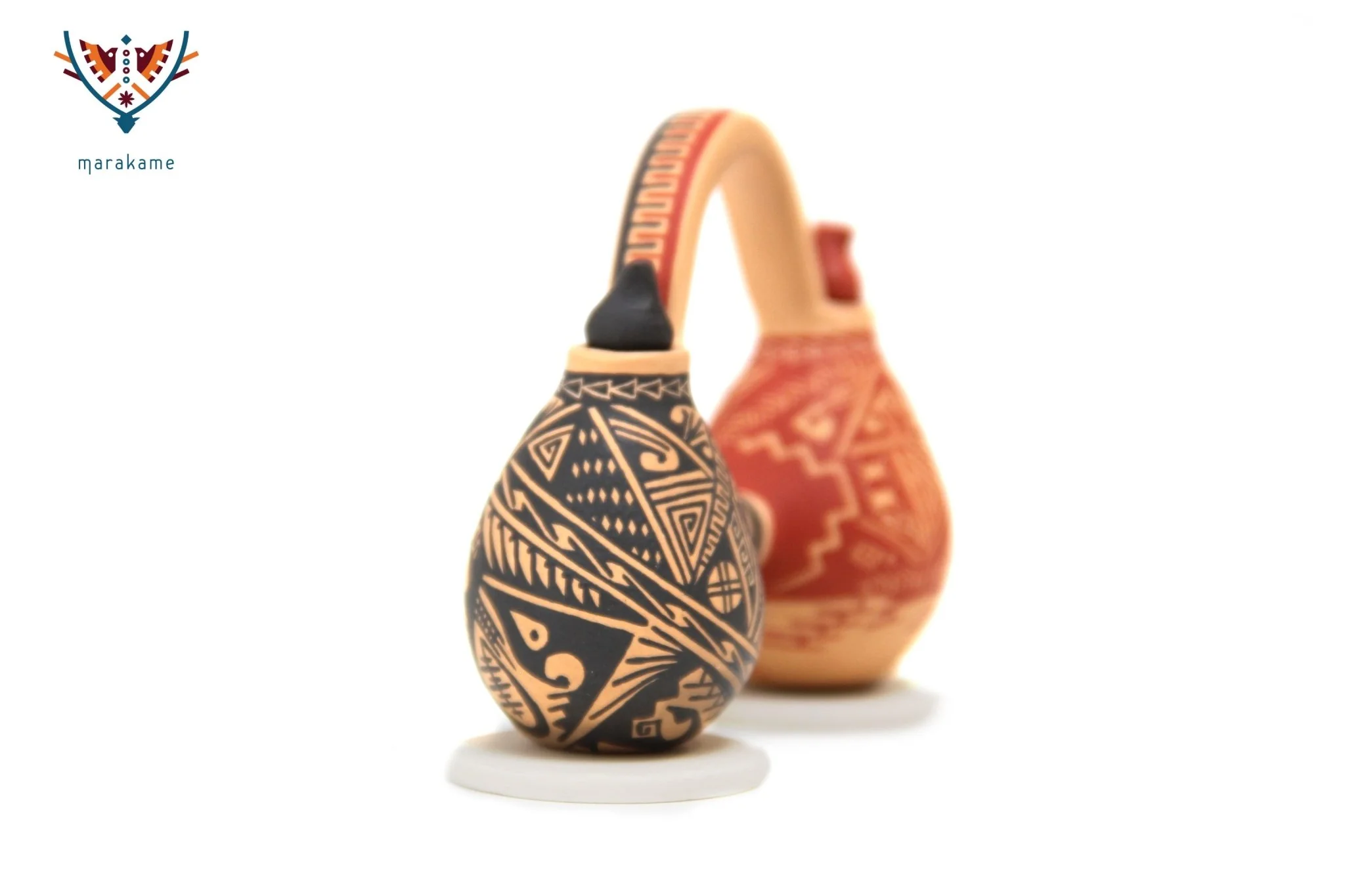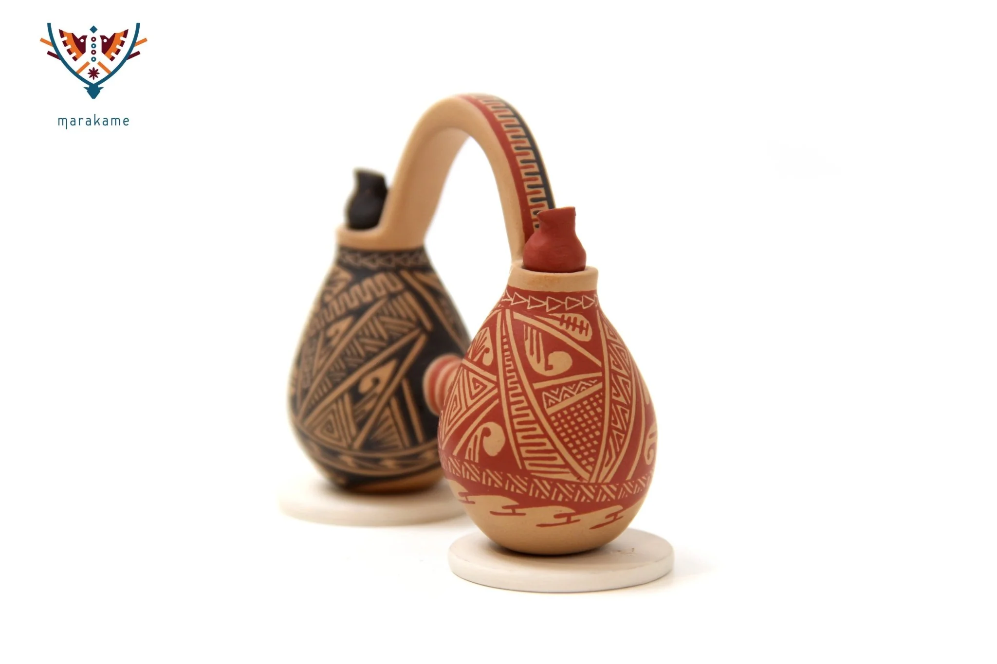 Esta miniatura es un verdadero ejemplo de la habilidad y creatividad del artista. Se trata de una pieza única que consiste en dos jarrones pequeños conectados entre sí, creando un diseño complejo y atractivo. La miniatura está hecha con gran detallismo y precisión, y los detalles de la pintura son tan finos como para ser apreciados con el ojo del lupa. La forma y la estructura de los jarrones están perfectamente modeladas, creando un efecto visual rico y complejo.
