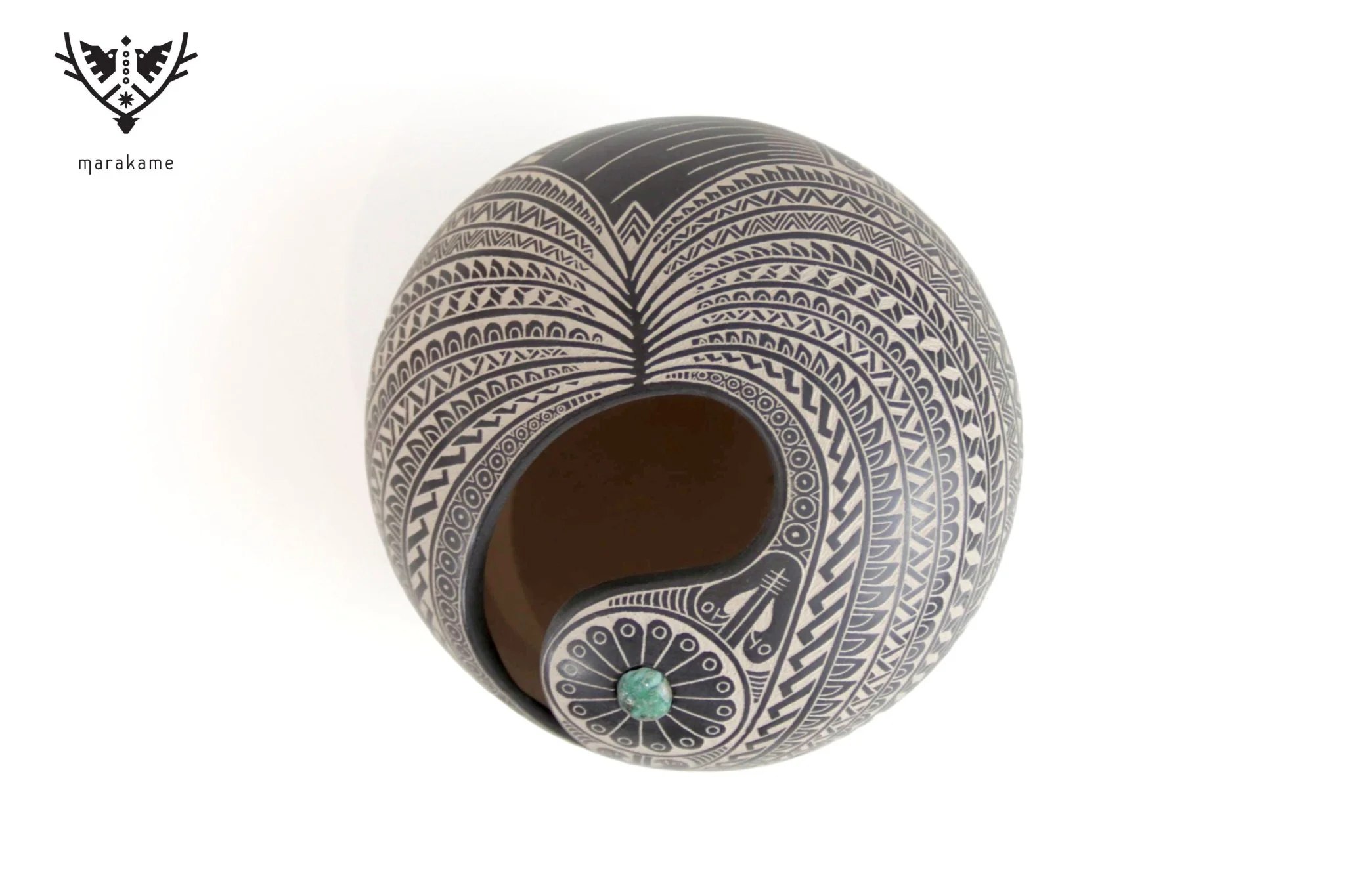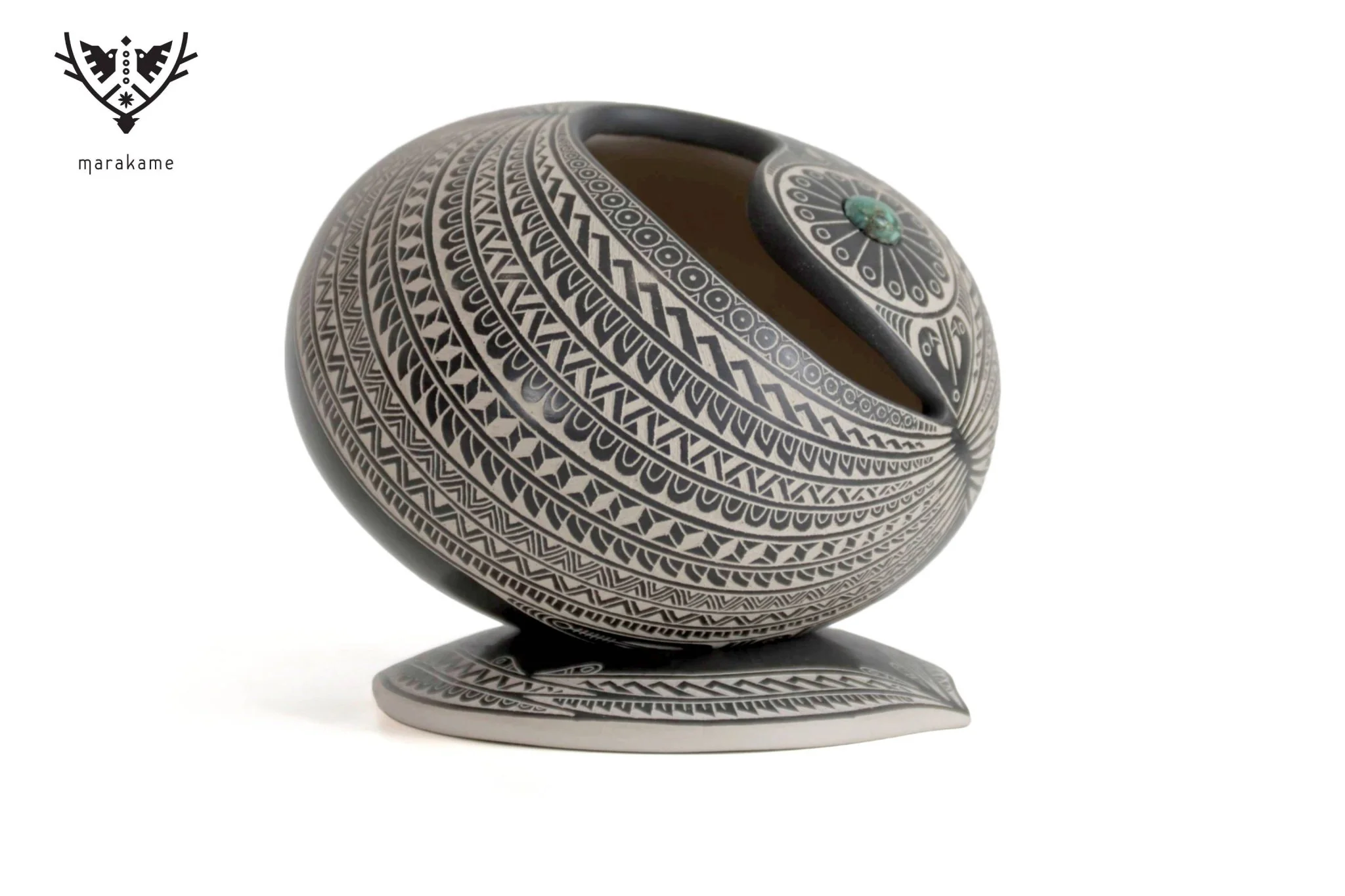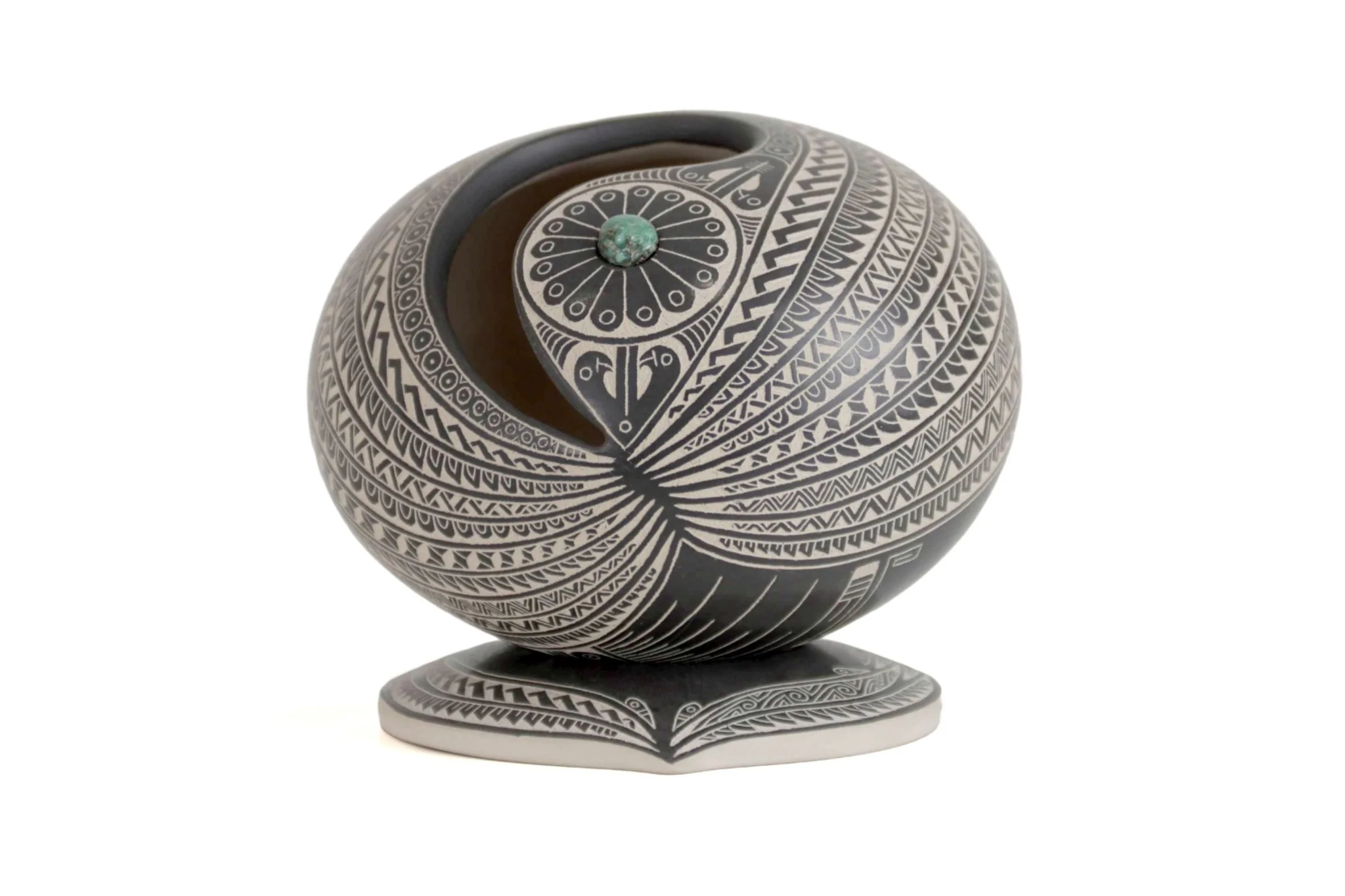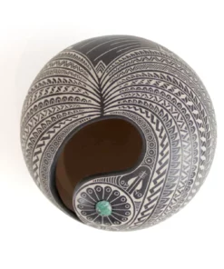 Cerámica de Mata Ortiz – Pieza negra con turquesa