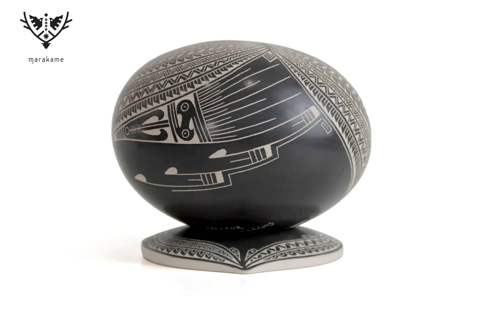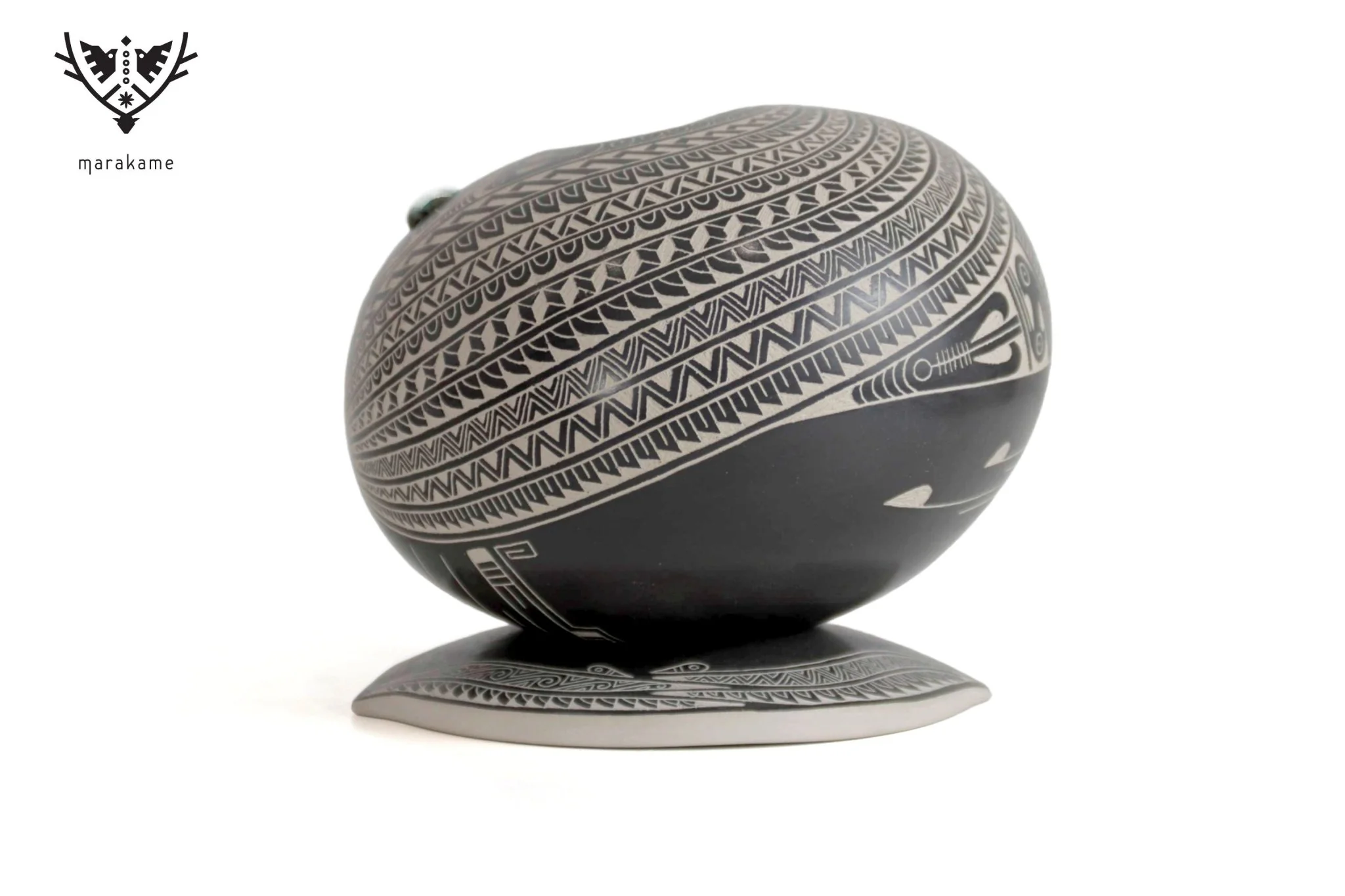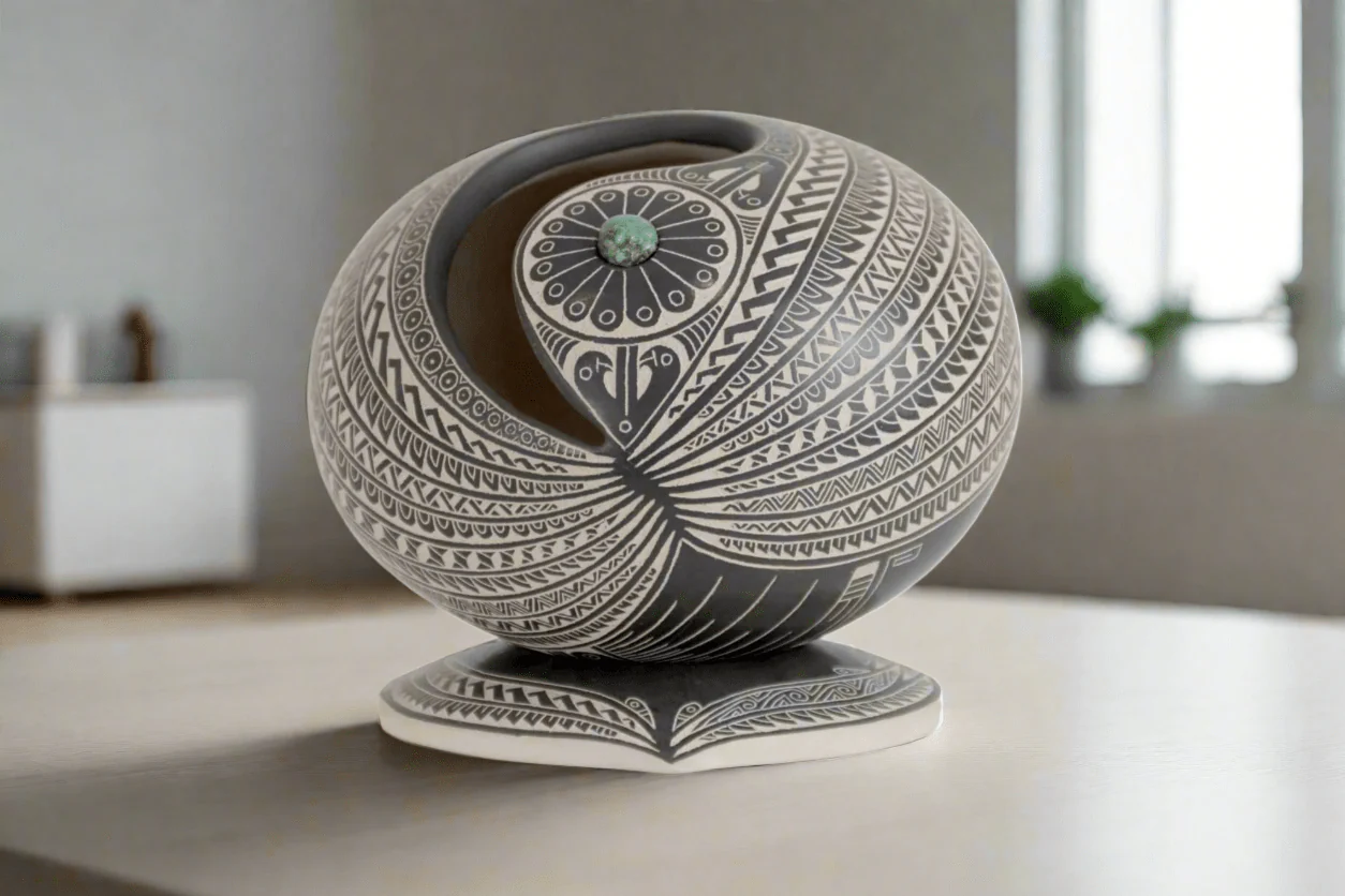 Cerámica de Mata Ortiz – Pieza negra con turquesa
