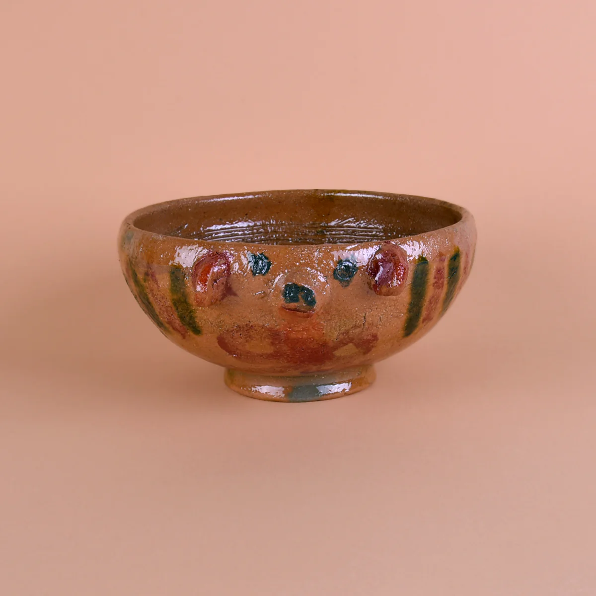 Barro moldeado, estriado policromado y esmaltado. Elaborada en un taller familiar.