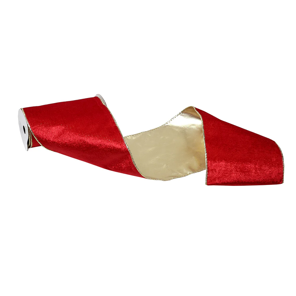 CR7213R Listón Terciopelo Rojo y Oro 15 cm. x 4.57 mts.