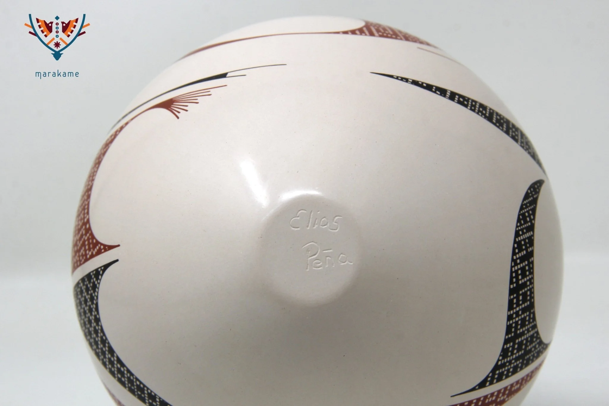 Elías Peña (Casas Grandes, 1968) es un artista reconocido por la alta calidad de sus piezas y su capacidad metafórica. Su formación como alfarero la desarrolló en la compañía de Andrés Villalba y Leonel Quezada. Ha recibido numerosos reconocimientos en el Concurso Anual de Cerámica en Mata Ortiz. En 2008 fue ganador del XXXII Premio Nacional de la Cerámica (Tlaquepaque, Jal.) obteniendo el primer lugar de certamen. En 2015, recibió el 2do lugar en la categoría Barro Bruñido, del Gran Premio Nacional de Arte Popular 2015, que entrega la Presidencia de México y FONART.