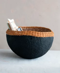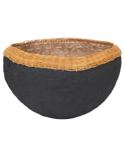 CUENCO DE PAPEL MACHE NEGRO CON ORILLA DE RATAN