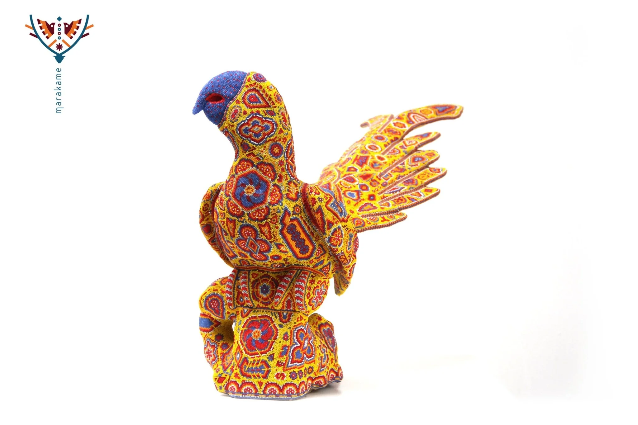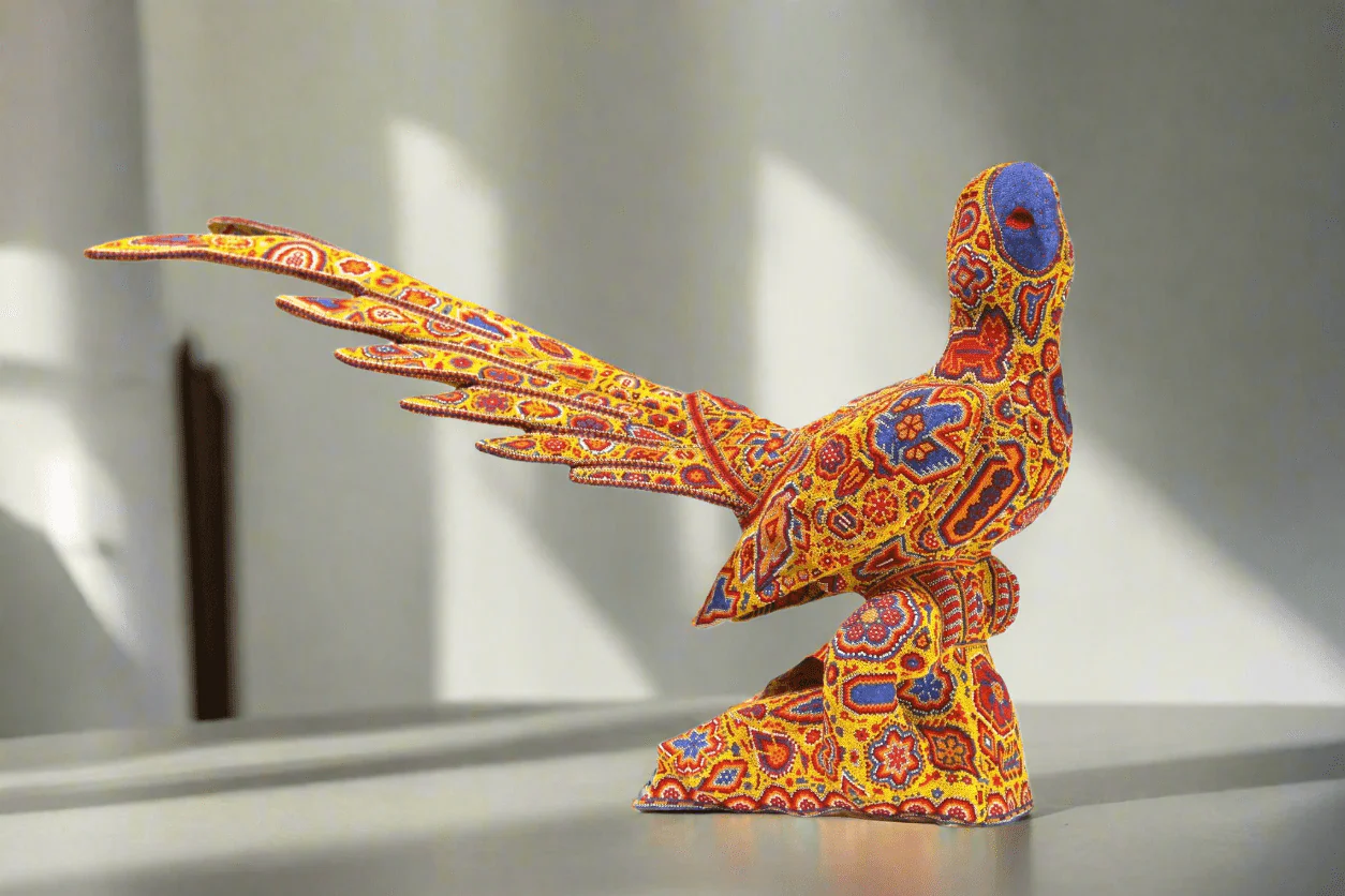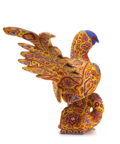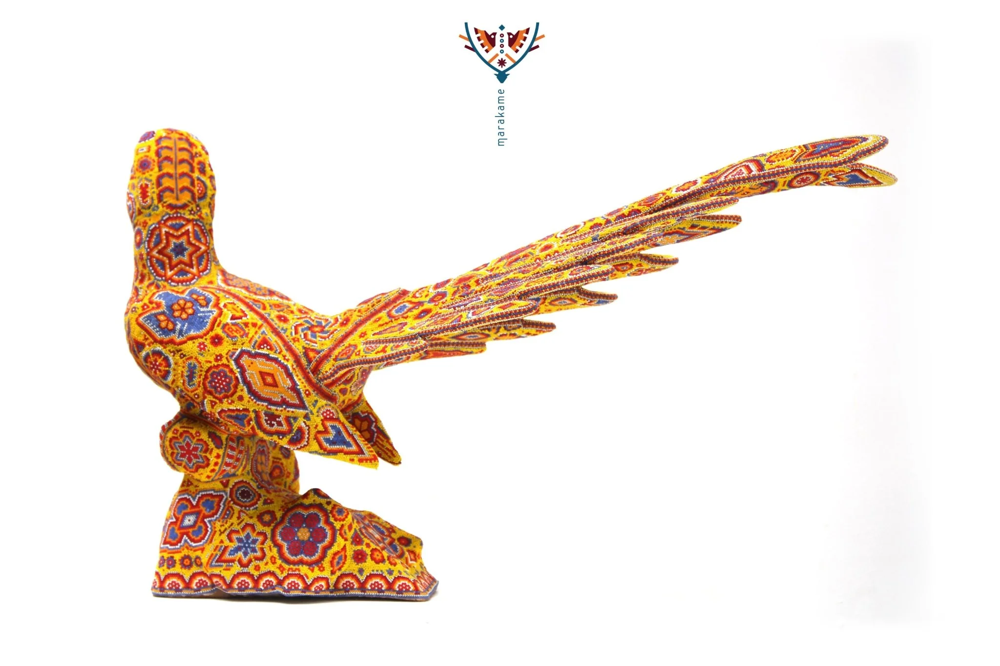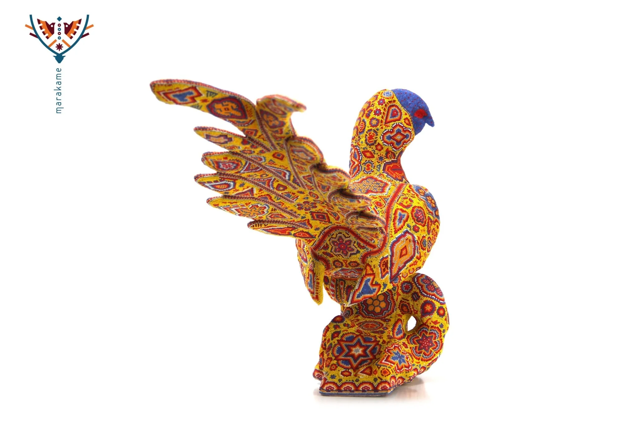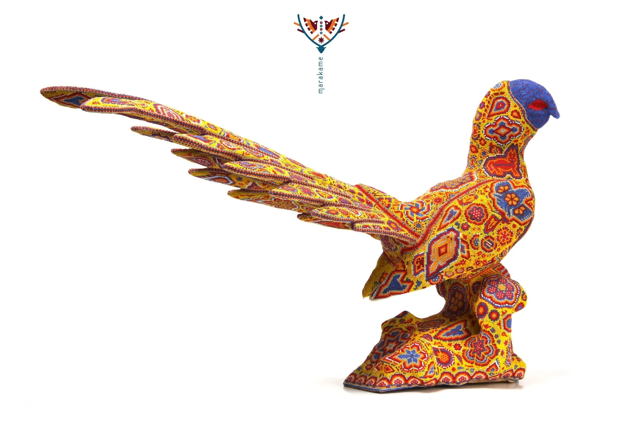 Marakame innova e integra las habilidades de los artistas Zapotecas, fusionando las piezas logradas por ellos con la destreza visual y manual de los Wixárika al pegar chaquiras de tamaño diminuto una a una, desde 20 mil hasta más de 500 mil (más de 80 mil en esta pieza), durante períodos que van de entre 15 y 300 días.