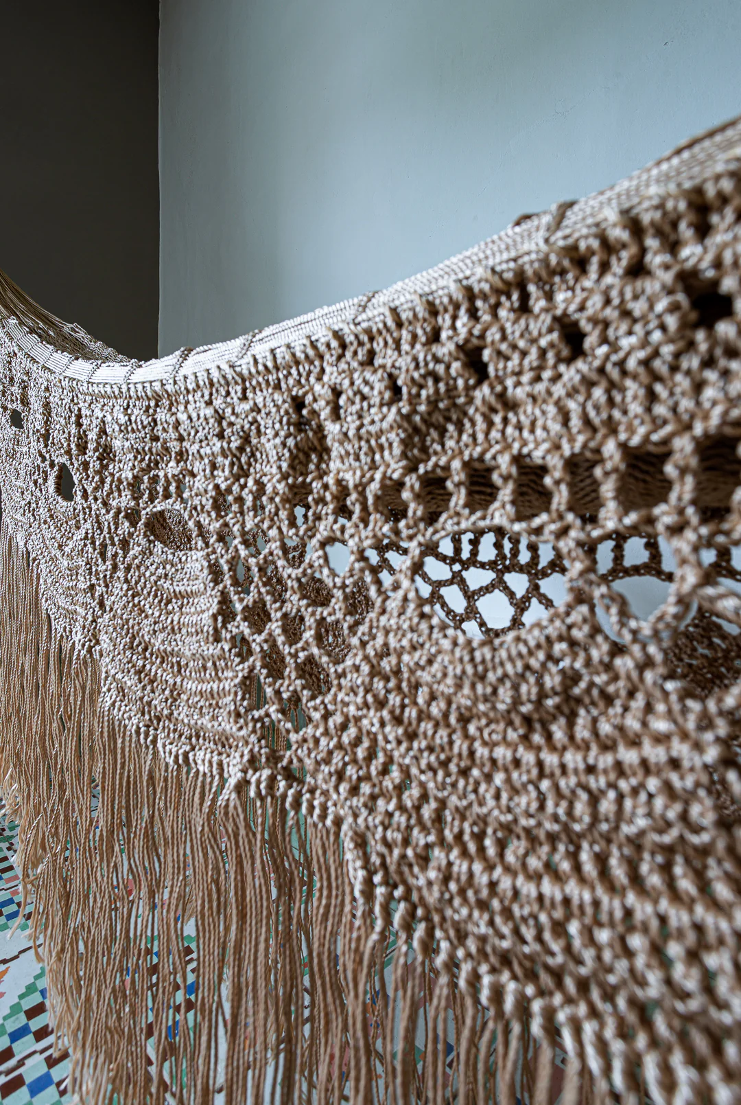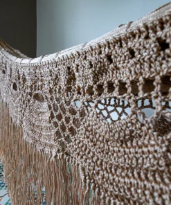 El mobiliario perfecto para armonizar y decorar un espacio, la Hamaca Abanicos de Macramé te brindará un lugar de descanso cómodo y con estilo. Una obra de arte, la gama de hamacas de Timesia está elaborada con cuidado por artesanos yucatecos que trenzan y anudan gruesos hilos de cuerda para crear una malla resistente y cómoda que se adapta a la forma del cuerpo.