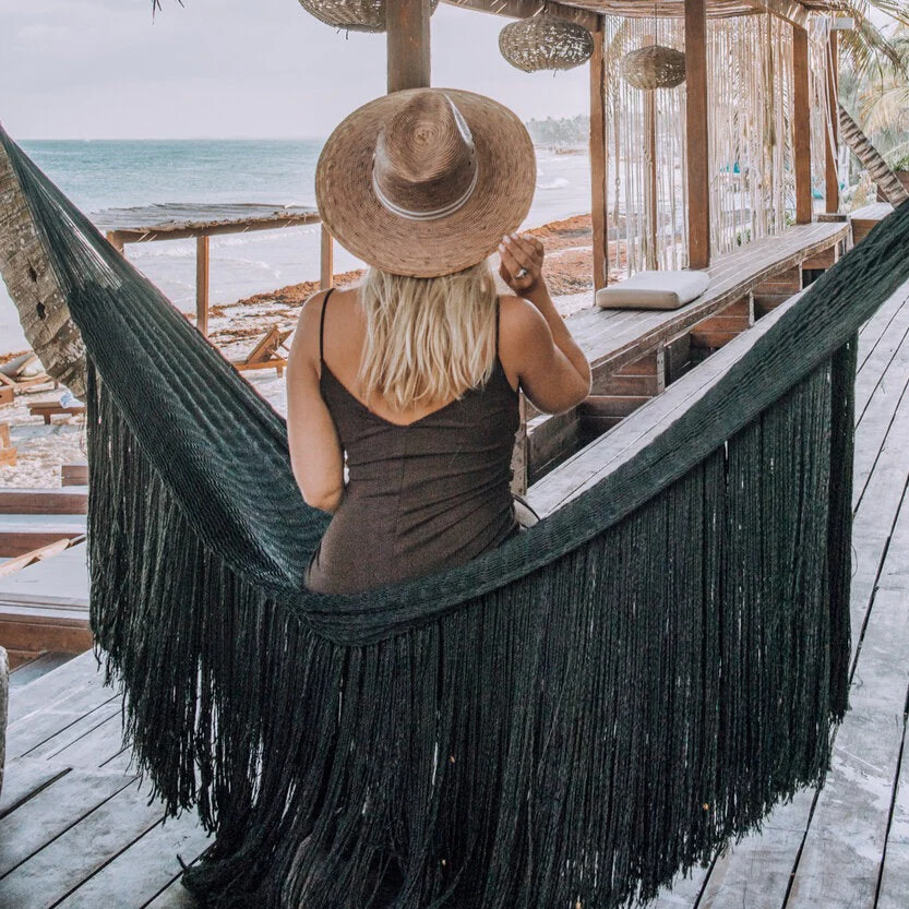 El mobiliario perfecto para armonizar y decorar un espacio, la Hamaca Barbas te brindará un lugar de descanso cómodo y con estilo . Una obra de arte, la gama de hamacas de Timesia está elaborada con cuidado por artesanos yucatecos que trenzan y anudan gruesos hilos de cuerda para crear una malla resistente y cómoda que se adapta a la forma del cuerpo.