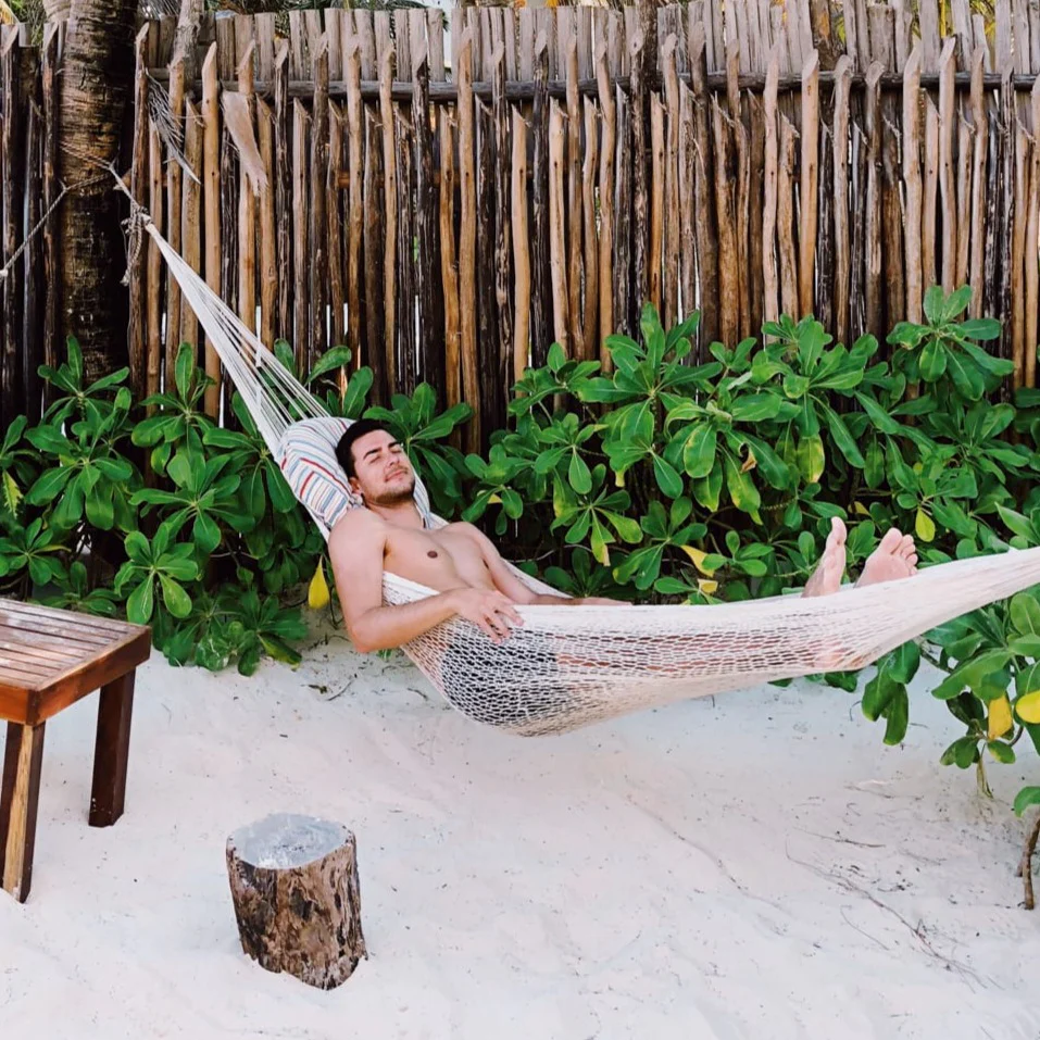 La Hamaca de descanso te brindará un lugar de descanso cómodo y con estilo. Una obra de arte, la gama de hamacas de Timesia está elaborada con cuidado por artesanos yucatecos que trenzan y anudan gruesos hilos de cuerda para crear una malla resistente y cómoda que se adapta a la forma del cuerpo.