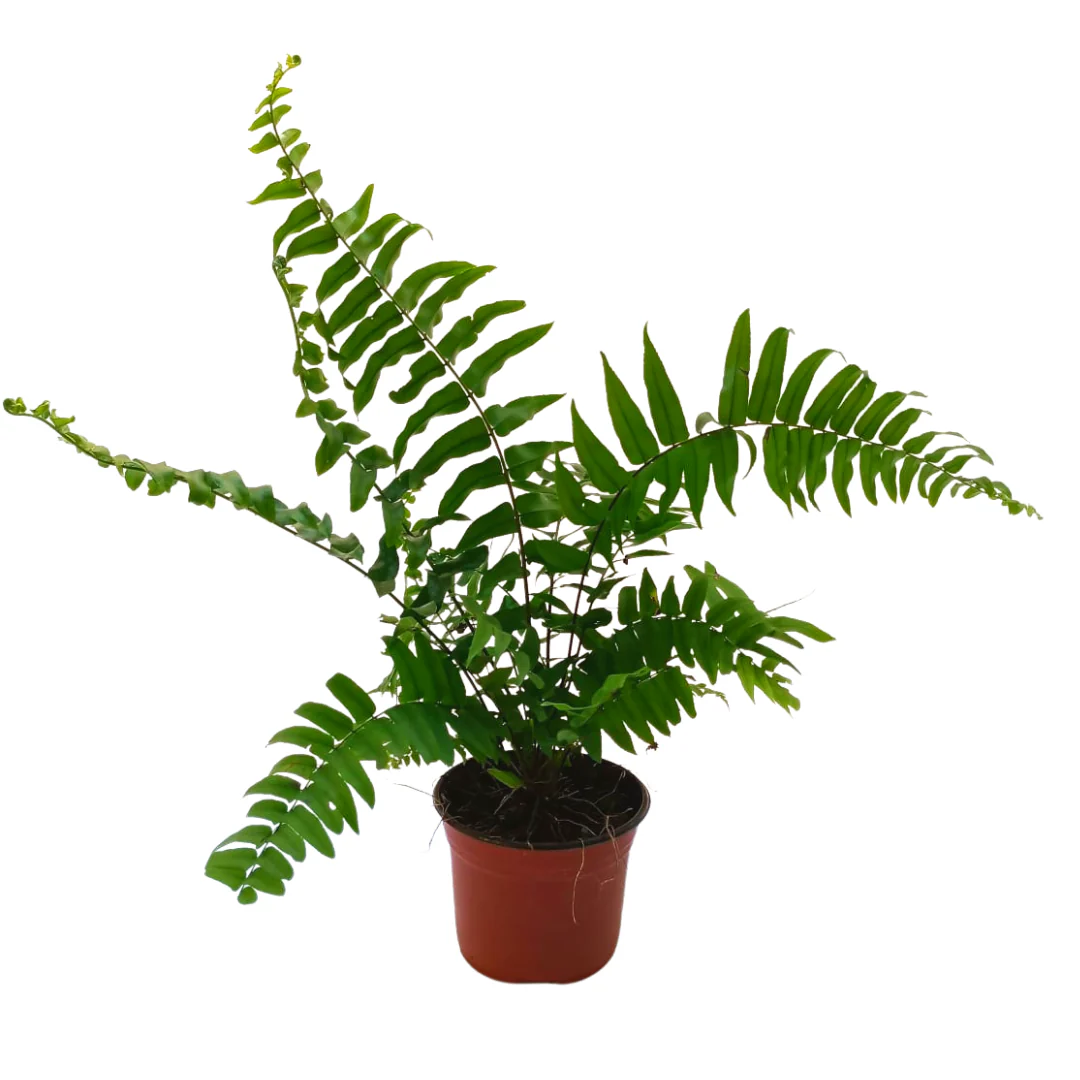 Helecho en maceta 6 pulgadas de diámetro y una altura aproximada de la planta de 20 a 30 centímetros.