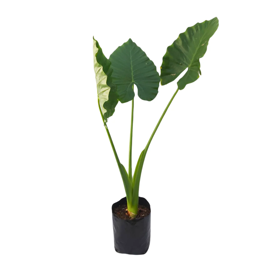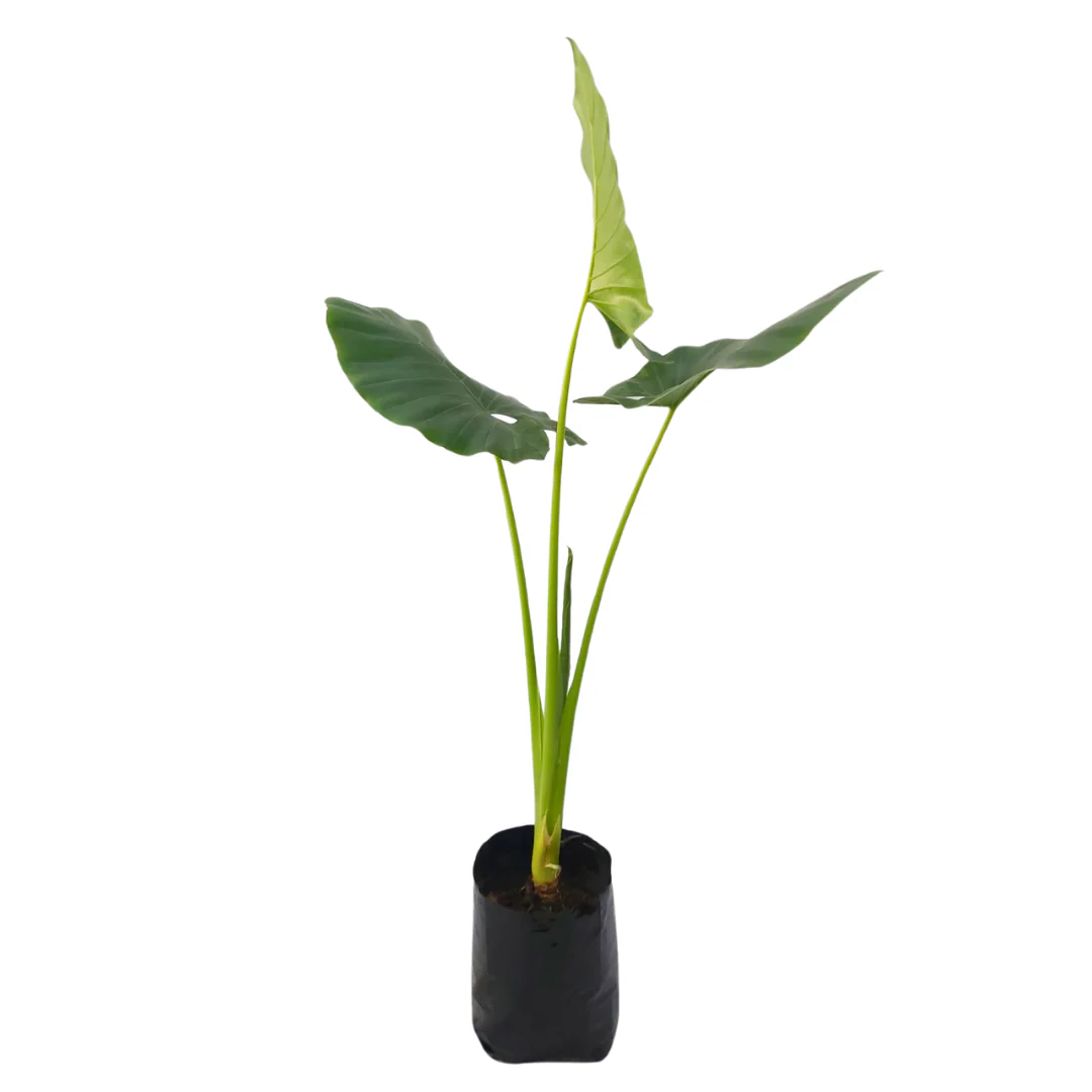 Planta tropical de hoja grande ideal para terrazas con exposición solar media o tamizada.