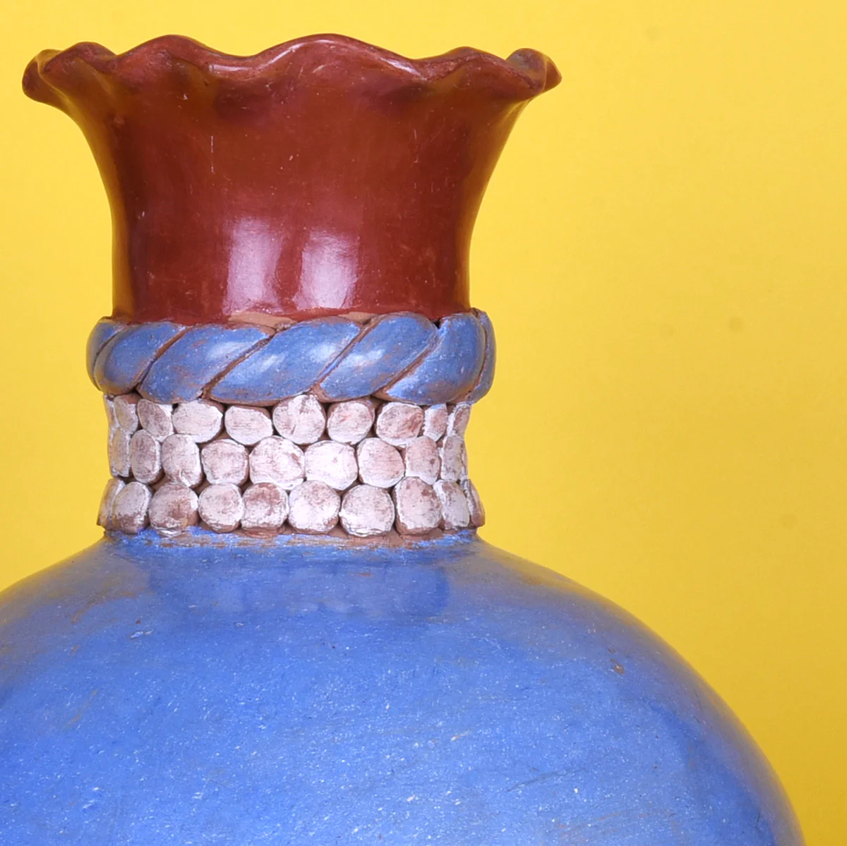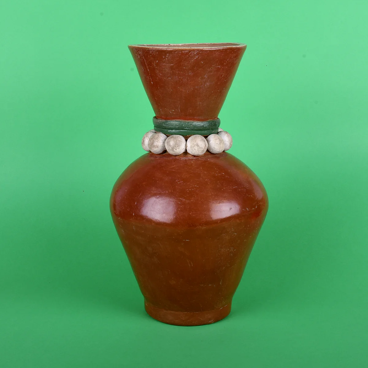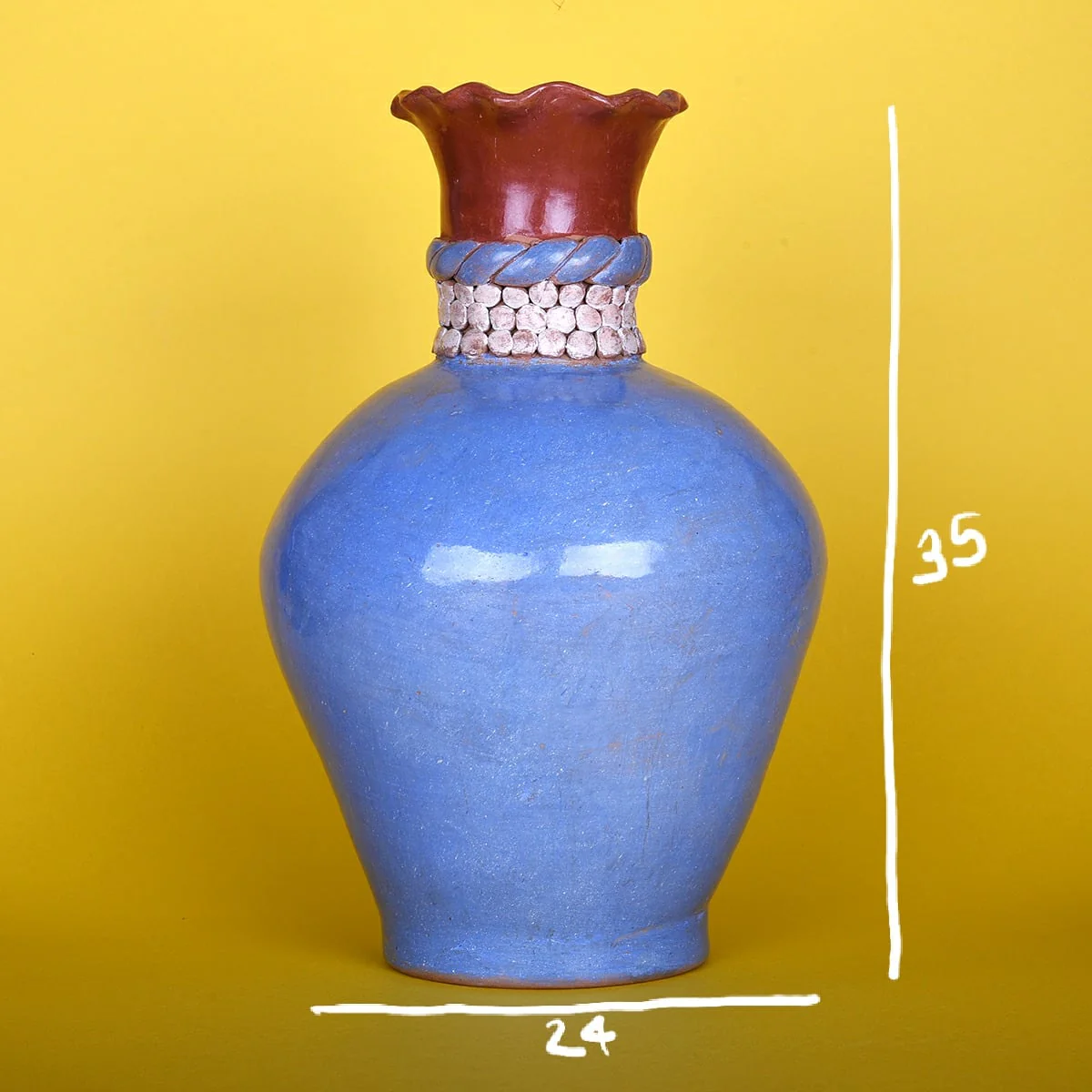 Barro moldeado, engobado y bruñido. Elaborada en un taller familiar.