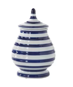 JARRON DE PORCELANA BLANCA LINEAS AZULES
