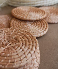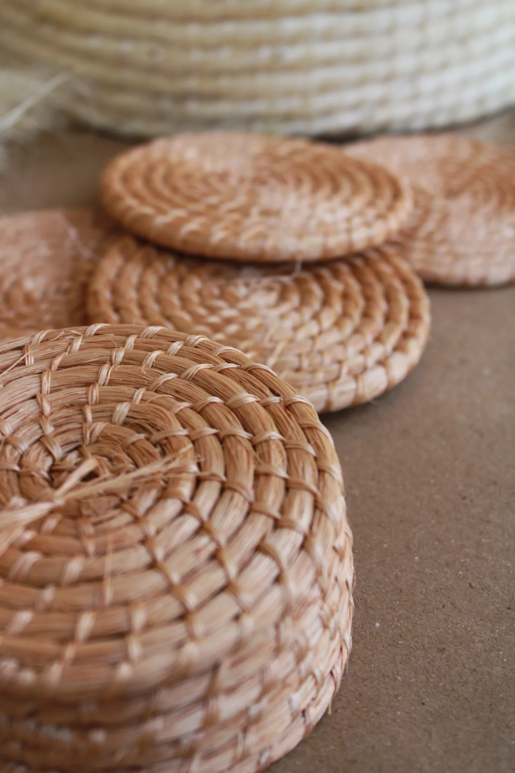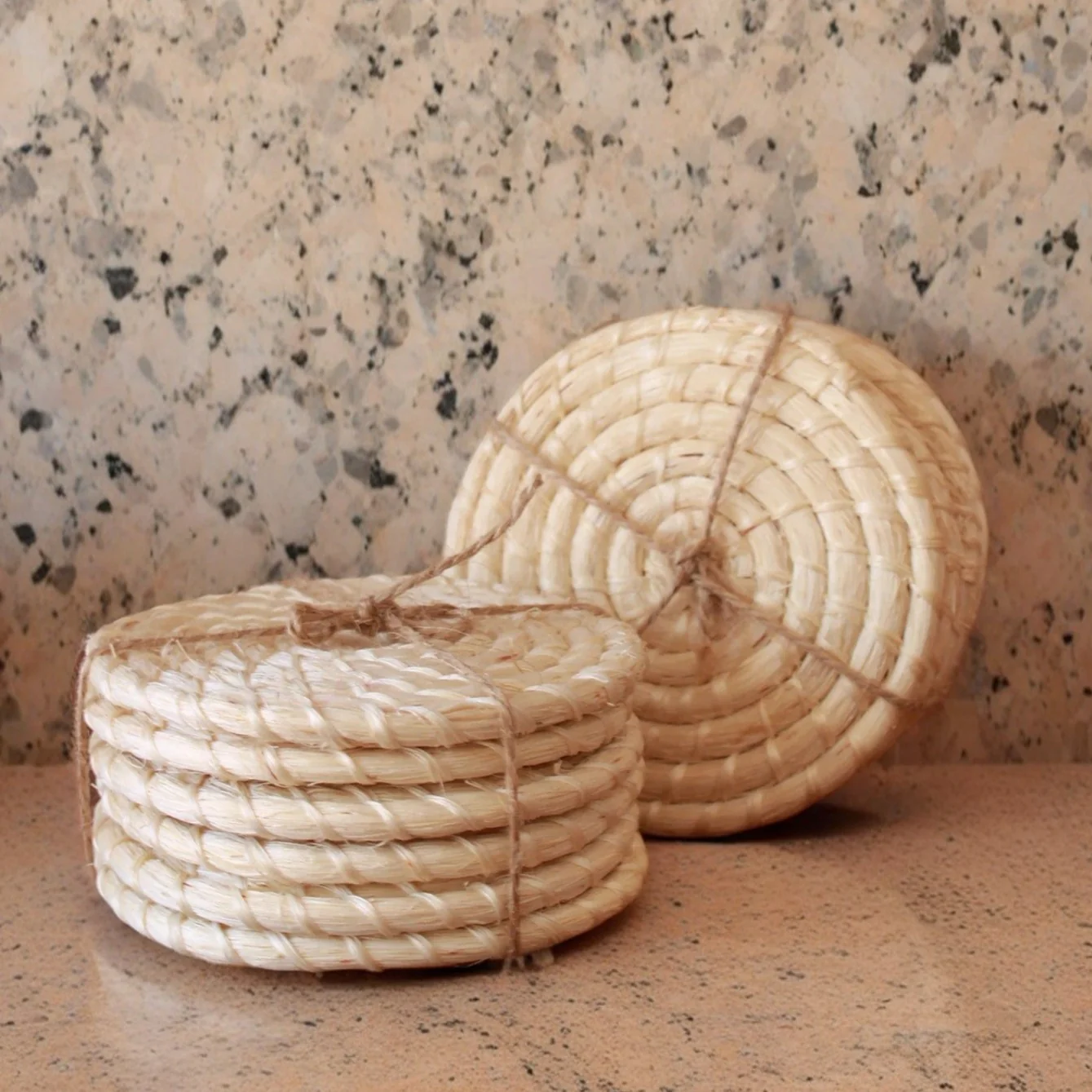 Nuestros juego de 6 porta vasos de henequén han sido tejidos a mano y creados junto a nuestros maestros artesanos utilizando técnicas de tejido con henequén, ofreciendo un acabado resistente junto con un diseño contemporáneo.