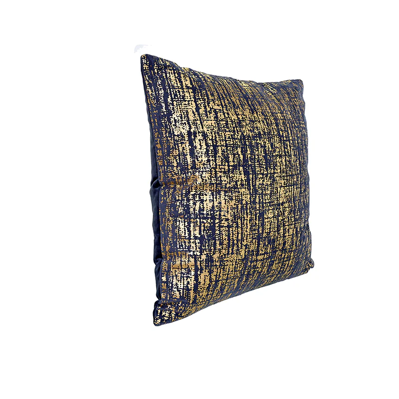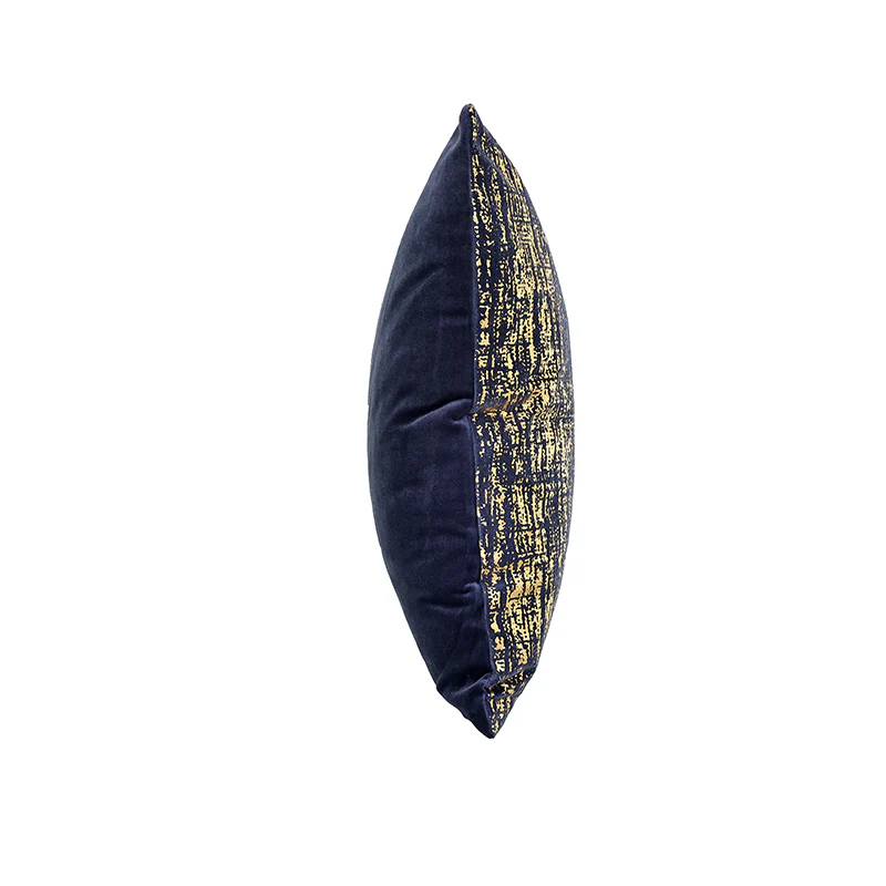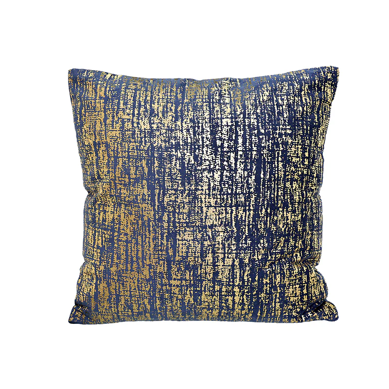 KC246250 Cojín Terciopelo Azul Acero Impresión Oro 50×50 cm.