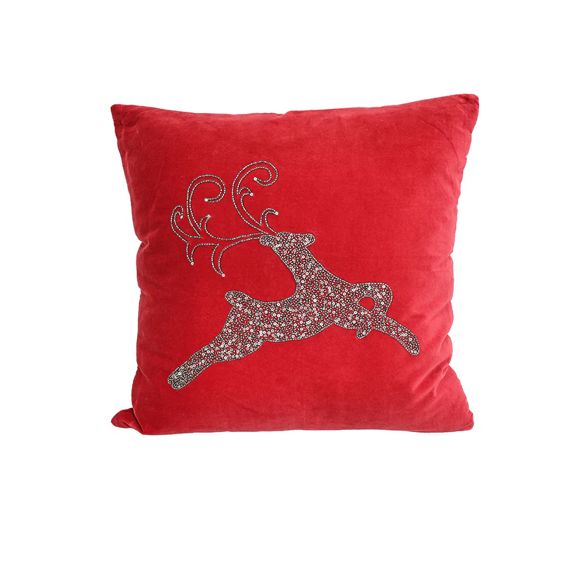 KC246850 Cojín Terciopelo Rojo Pedrería Reno 50×50 cm.