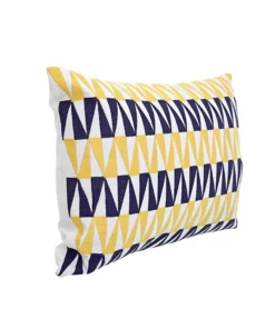 KC247535 Cojín Ibiza Blanco Bordado Amarillo y Azul 35×50 cm.