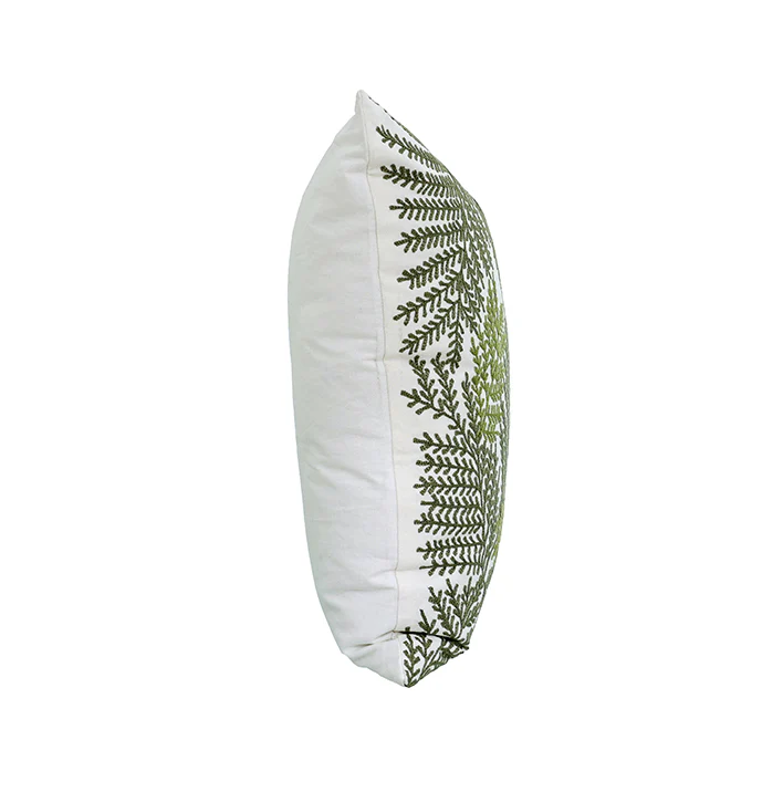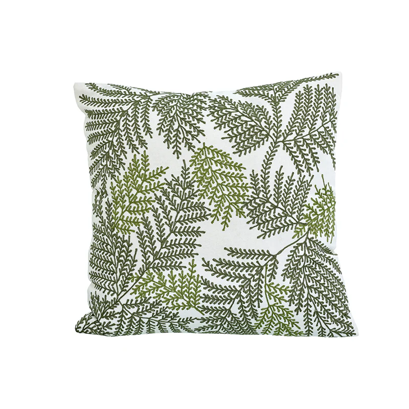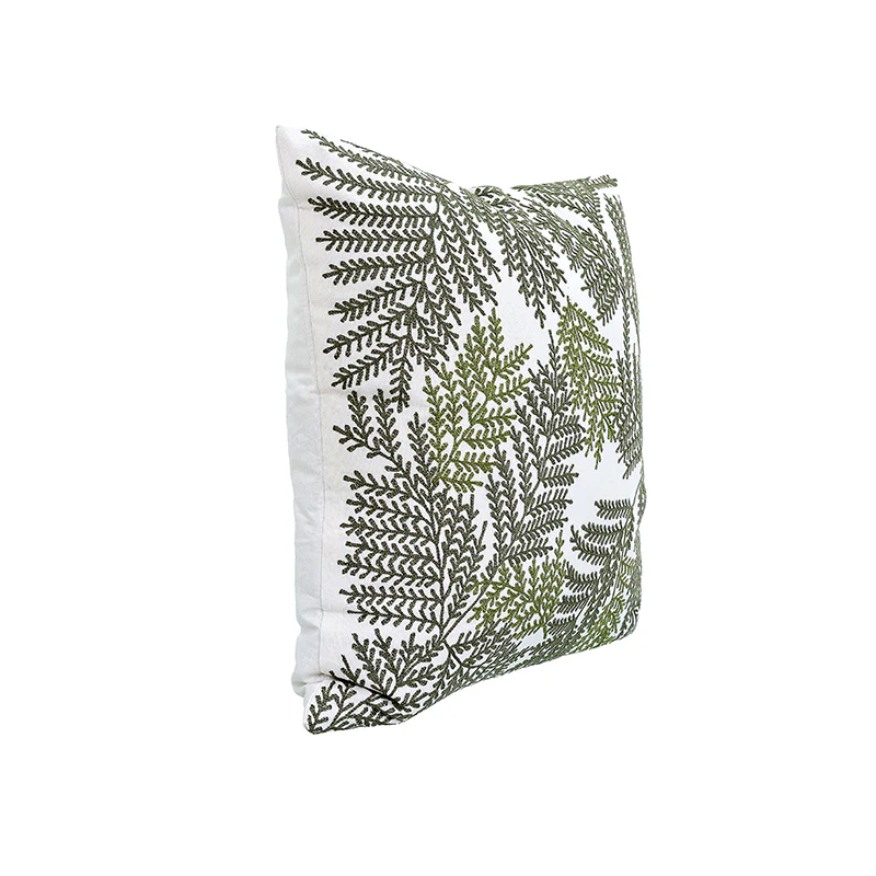 KC248250 Cojín Blanco Follaje Bordado Verde 50×50 cm.