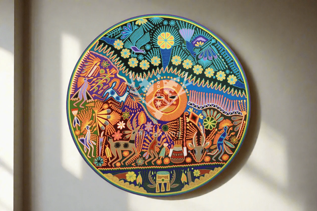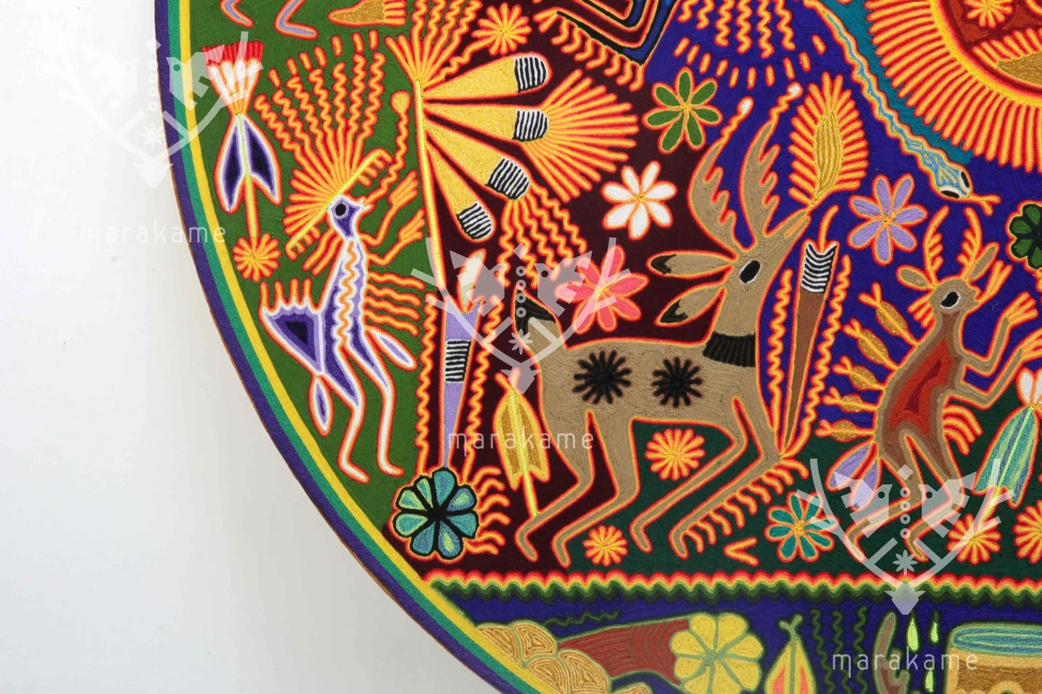 Nierika de Estambre Círculo Huichol – Nacimiento del padre Sol – 120 cm.