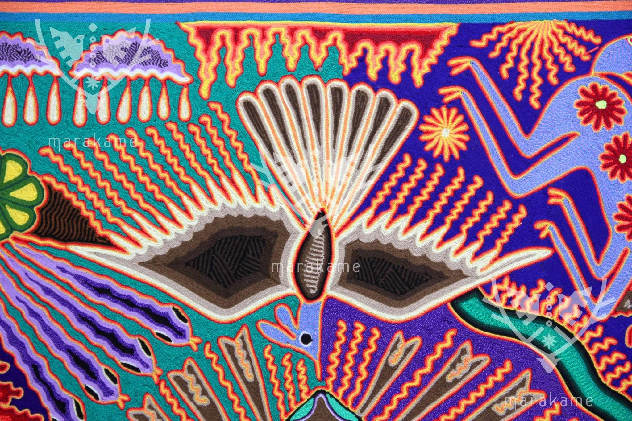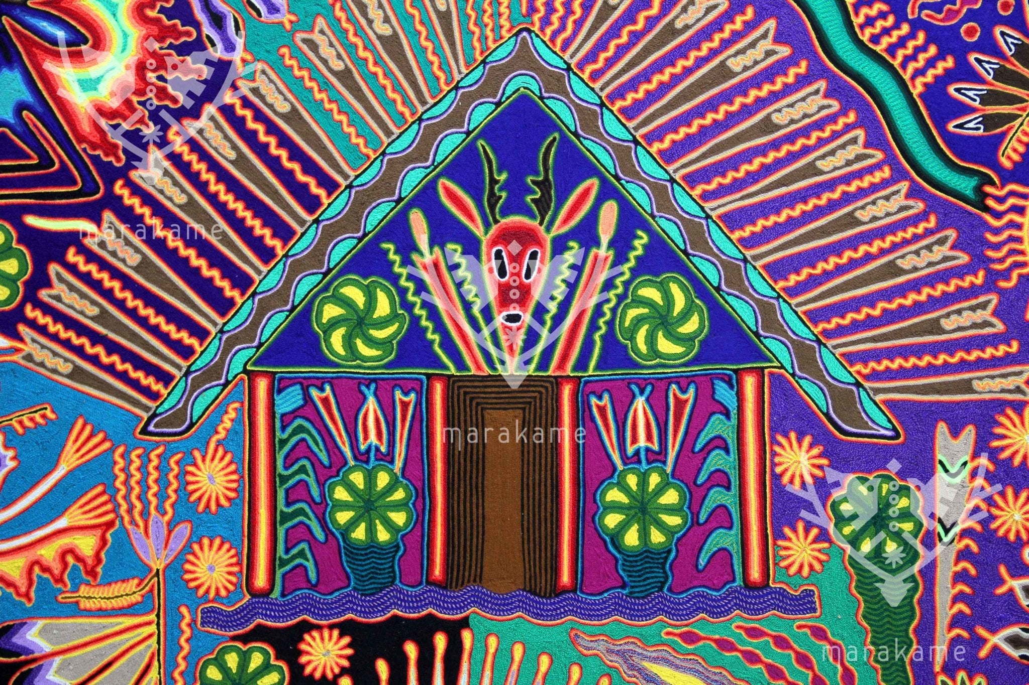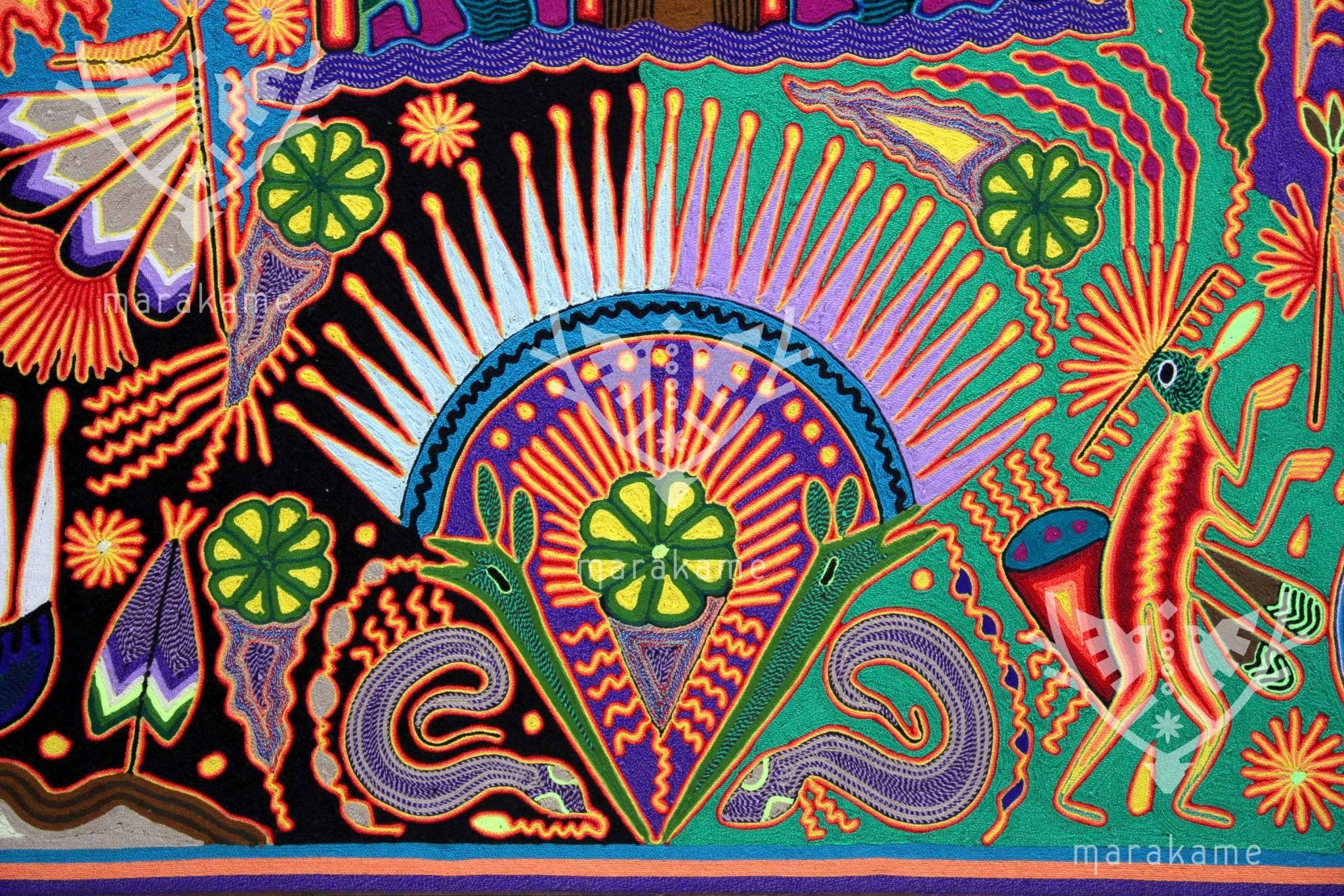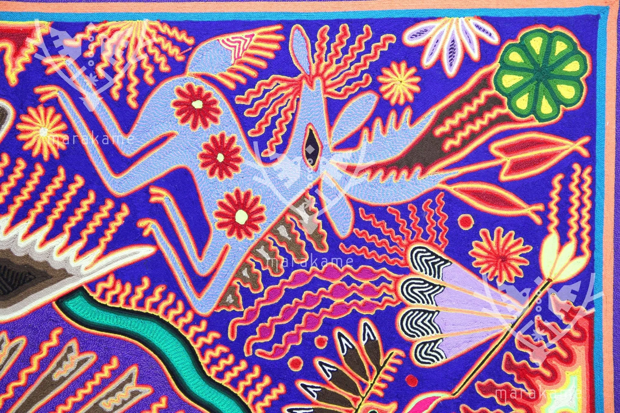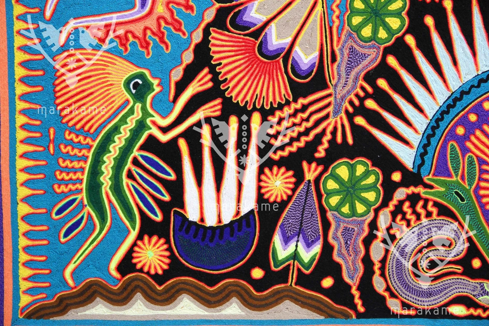 Nierika de Estambre Cuadro Huichol – El ruido de la noche – 120 x 120 cm.