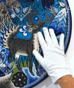 Durante 5 años, Arte Marakame ha trabajado en colaboración con Haiviya y Yulama (nombres wixaritari de Ángel Torres de la Cruz y Nicolasa López Reza), comisionando y acompañando la producción de piezas en la técnica conocida como pintado con hilo, bien conocida en la amplia producción del arte huichol.