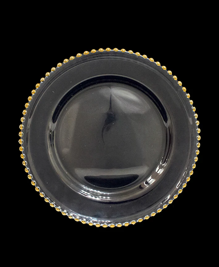 R733002-1 BAJO PLATO VIDRIO PERLAS ORO 33 CMS