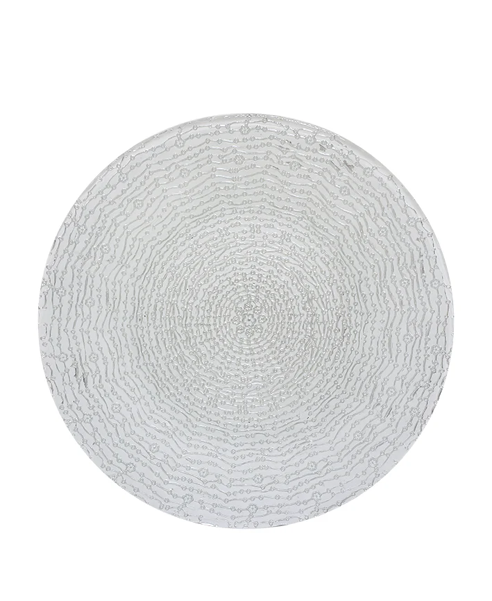 R733007-2 BAJO PLATO VIDRIO PLATA/BLANCO 33 CM