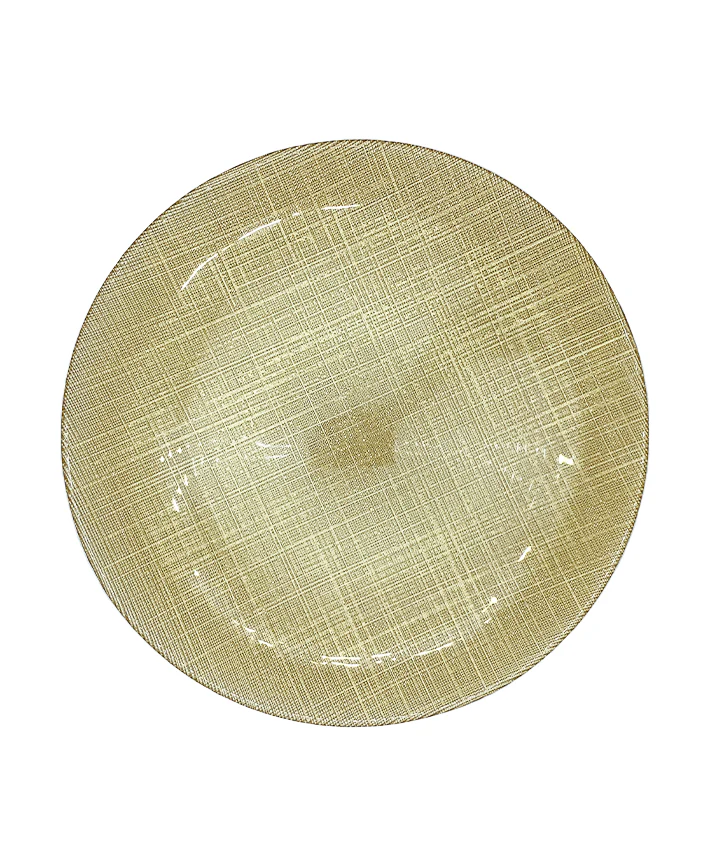 R733012-1 BAJO PLATO VIDRIO TELA LISO ORO 32CM