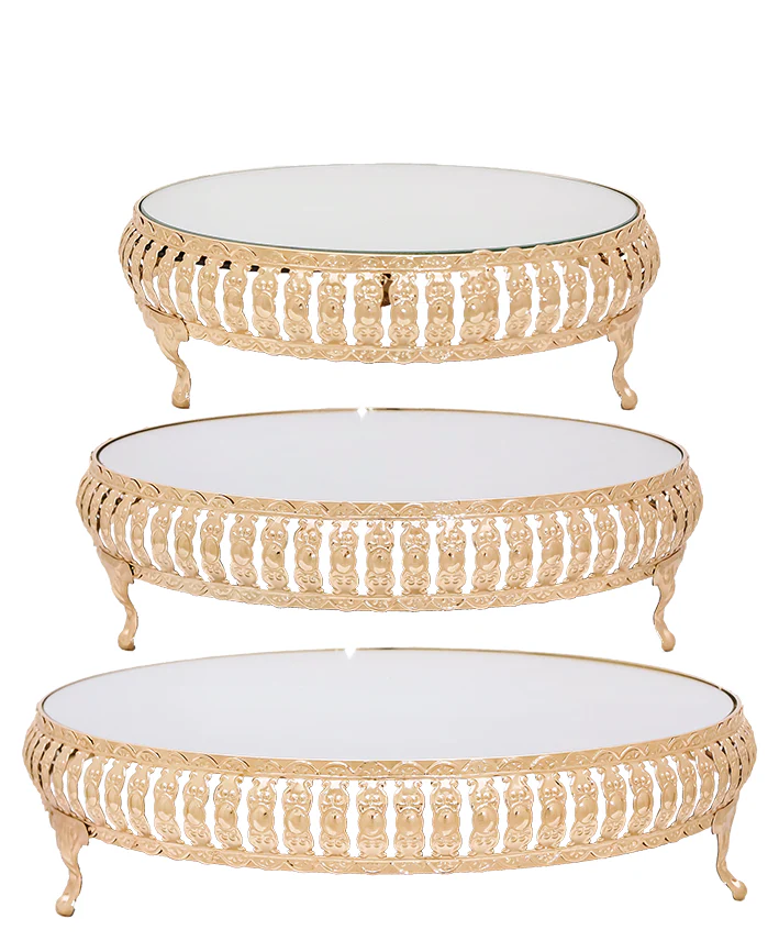 BASE P/PASTEL ORO REDONDA C/ESPEJO SET 3 PZAS 25 30 Y 35 CM