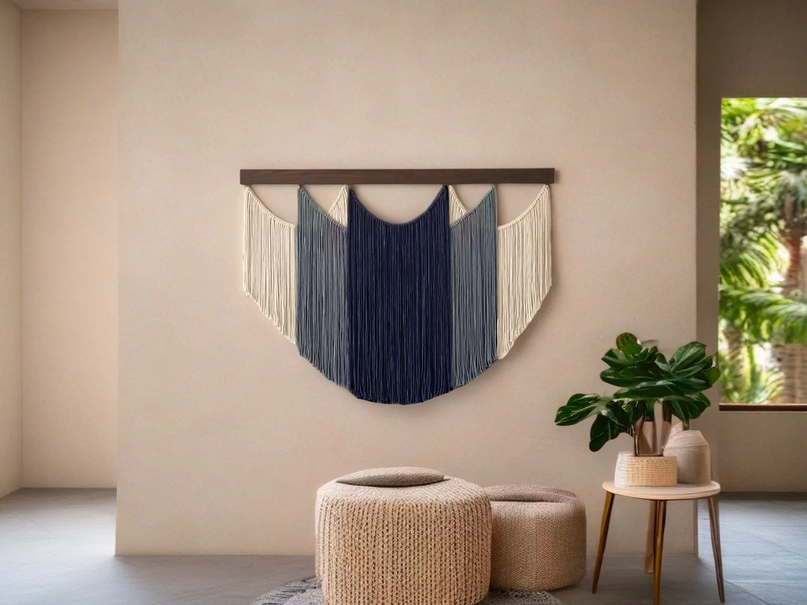 Decora con nuestro tapiz de macramé hecho de algodón y madera. Fabricado íntegramente a mano, por nuestros artesanos en Yucatán, México.