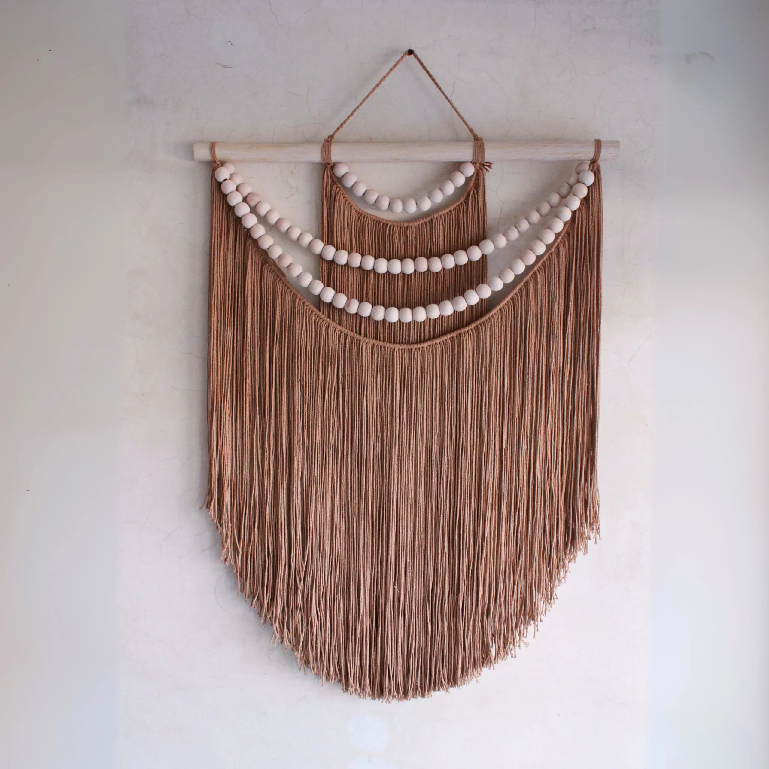 Decora con nuestro tapiz de macramé hecho de algodón y tronco de madera. Fabricado íntegramente a mano, por nuestros artesanos en Yucatán, México.