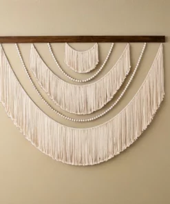 Decora con nuestro tapiz de macramé hecho de algodón y tronco de madera. Fabricado íntegramente a mano, por nuestros artesanos en Yucatán, México.