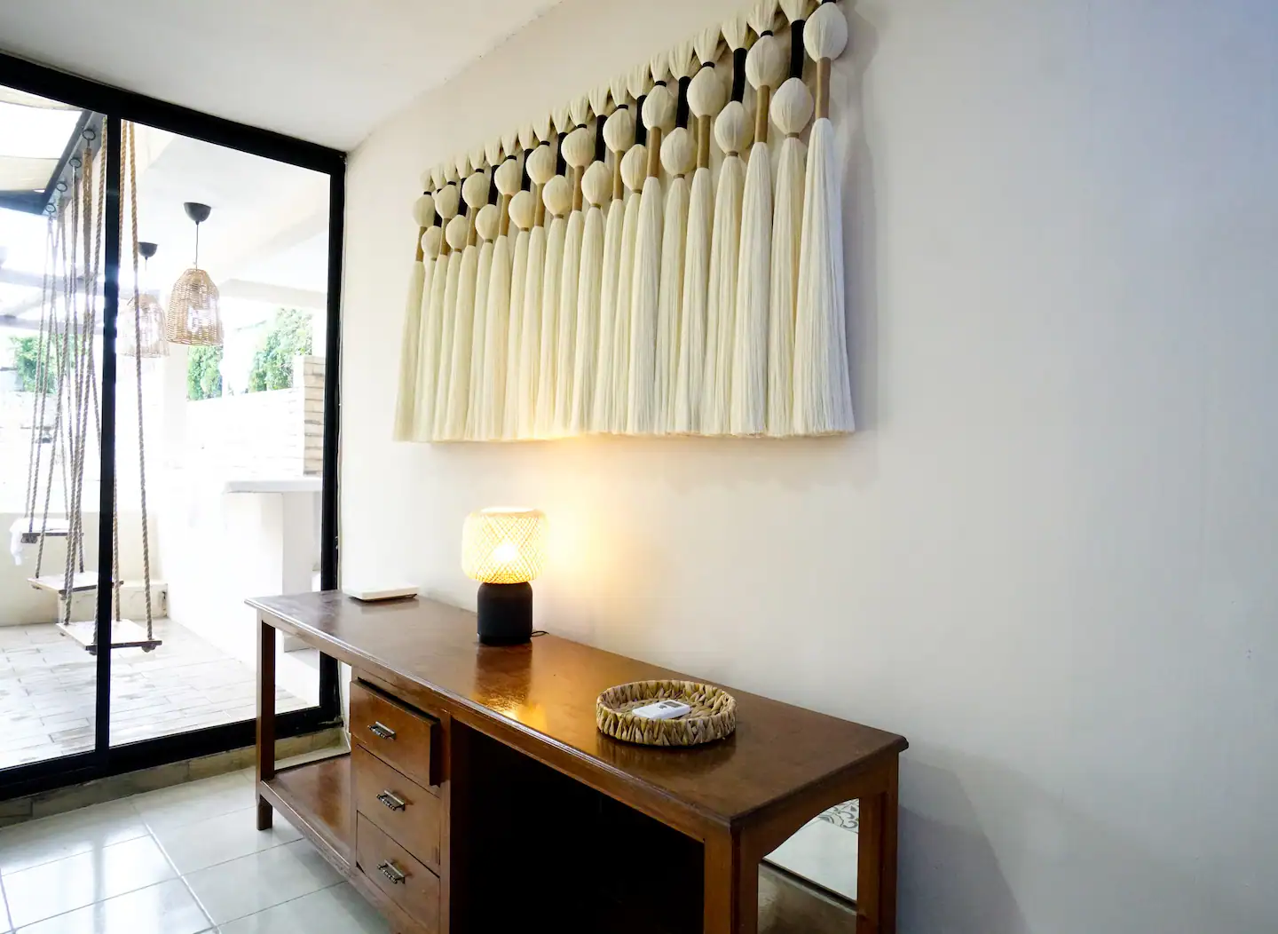 Decora con nuestro tapiz Borlas hecho de Hilos de Hilaza engomada. Fabricado íntegramente a mano, por nuestros artesanos en Yucatán, México.