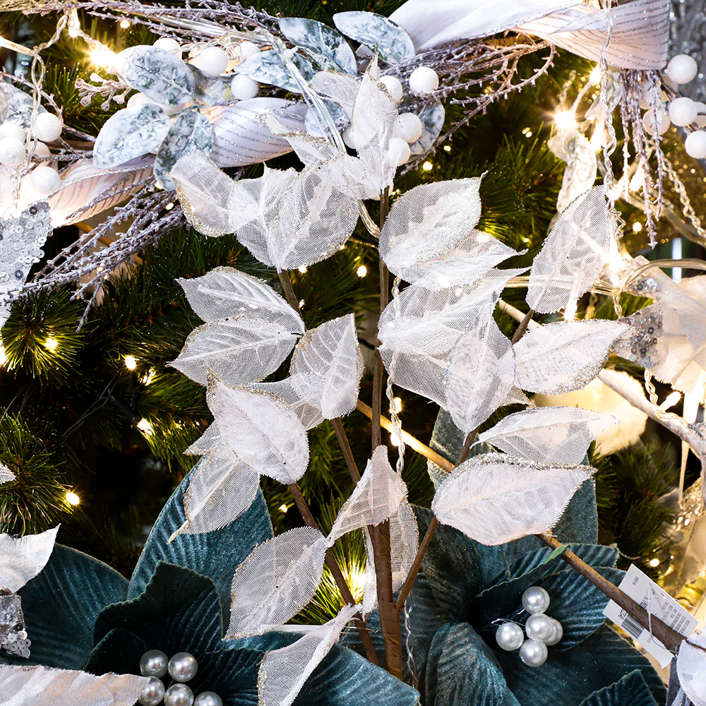 XH2329BO Rama Hojas Tul Blanco Oro Frost 77 Cm.